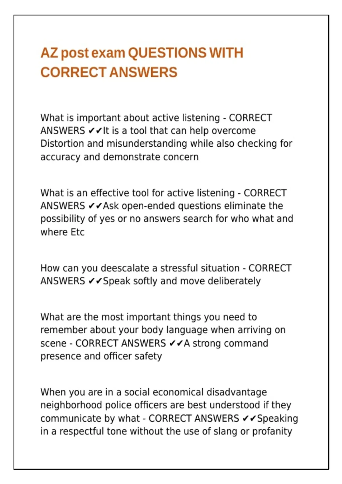AZ post exam QUESTIONS WITH CORRECT ANSWERS