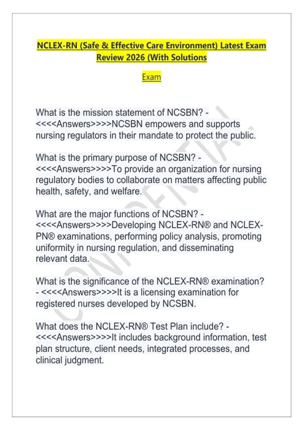 NCLEX-RN® Test Plan? - <<<<Answers>>>>It outlines