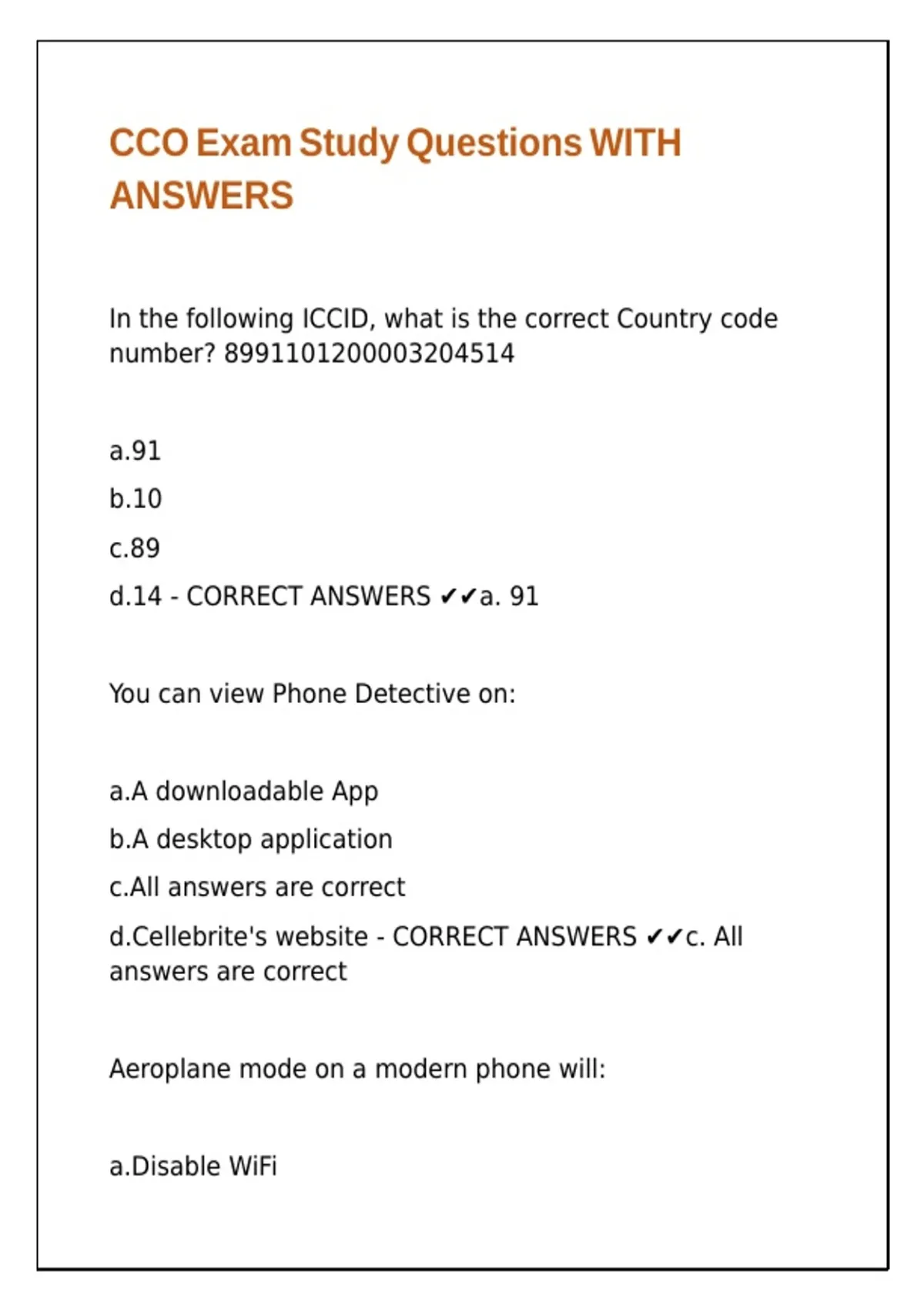 d.Cellebrite's website - CORRECT ANSWERS ✔✔c. All |\ |\ |\ |\ |\ |\ |\