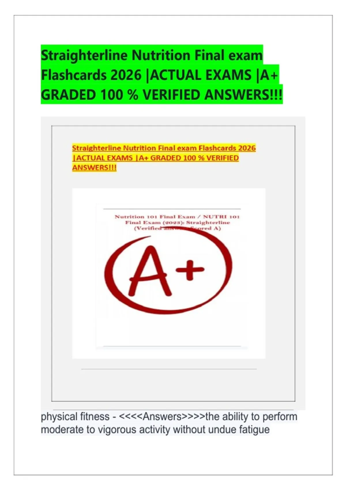 Straighterline Nutrition Final exam Flashcards 2026 |ACTUAL EXAMS |A+ GRADED 100 % VERIFIED ANSWERS!!!