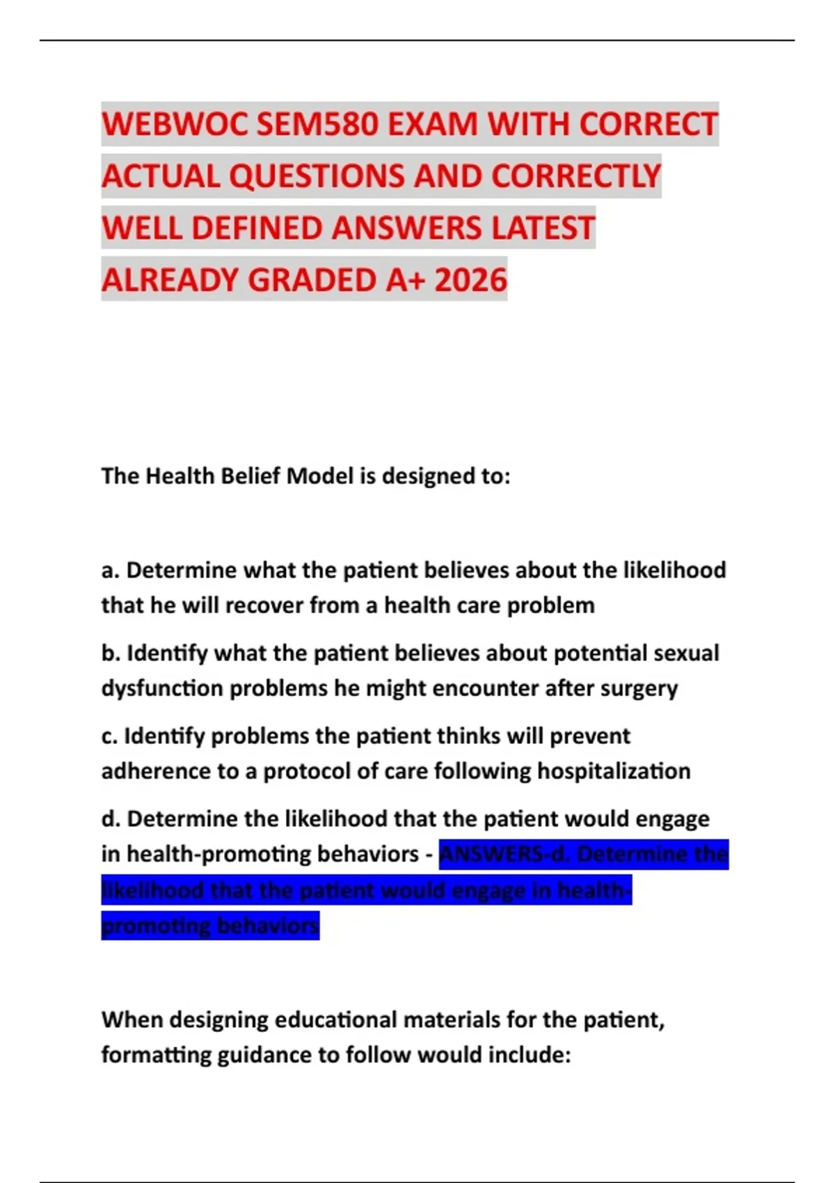 WEBWOC SEM580 EXAM WITH CORRECT ACTUAL QUESTIONS AND CORRECTLY WELL DEFINED ANSWERS LATEST ALREADY GRADED A+ 2026