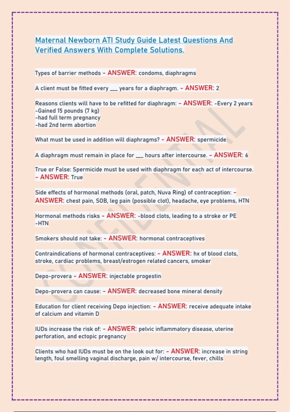 Maternal Newborn ATI Study Guide Latest Questions And Verified Answers With Complete Solutions.