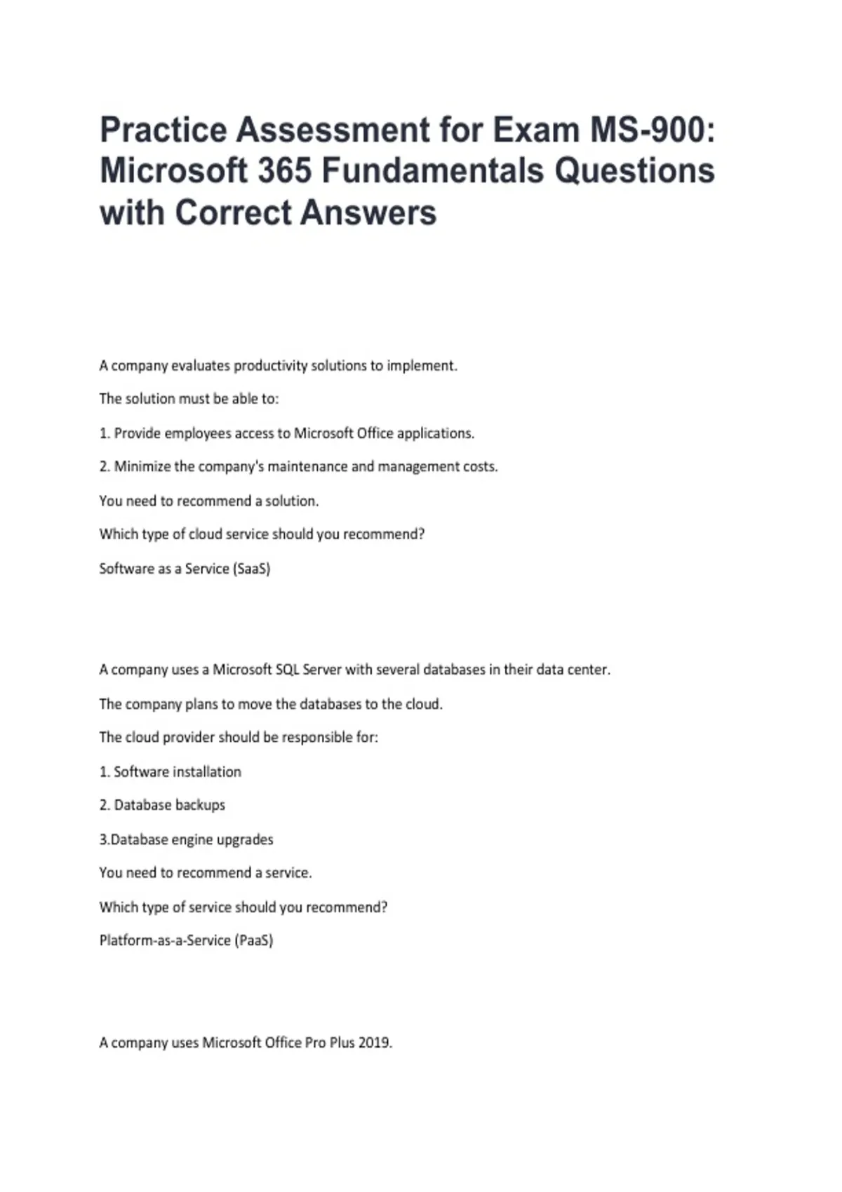 MS-900 Microsoft 365 Fundamentals | 2026/2027 Practice Assessment Questions & Answers