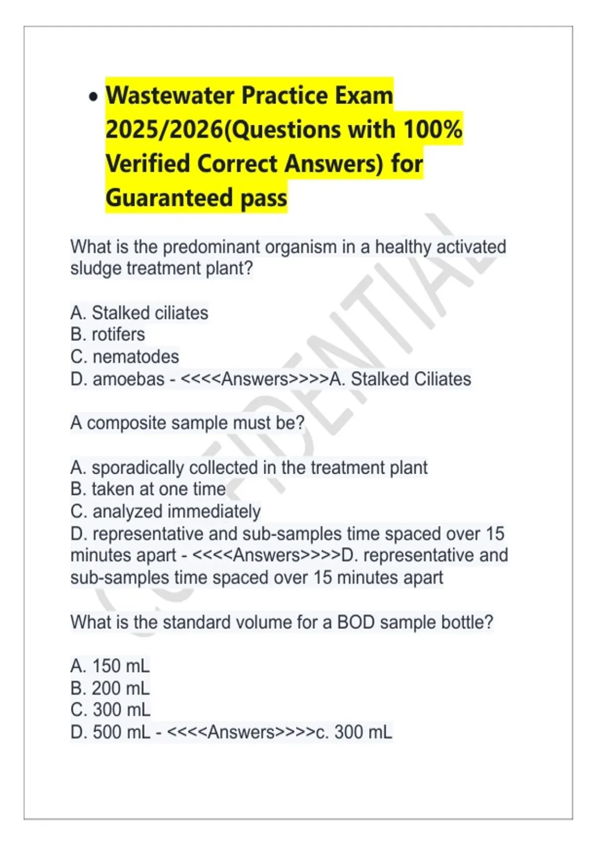 Wastewater Practice Exam 2025/2026(Questions with 100% Verified Correct Answers) for Guaranteed pass