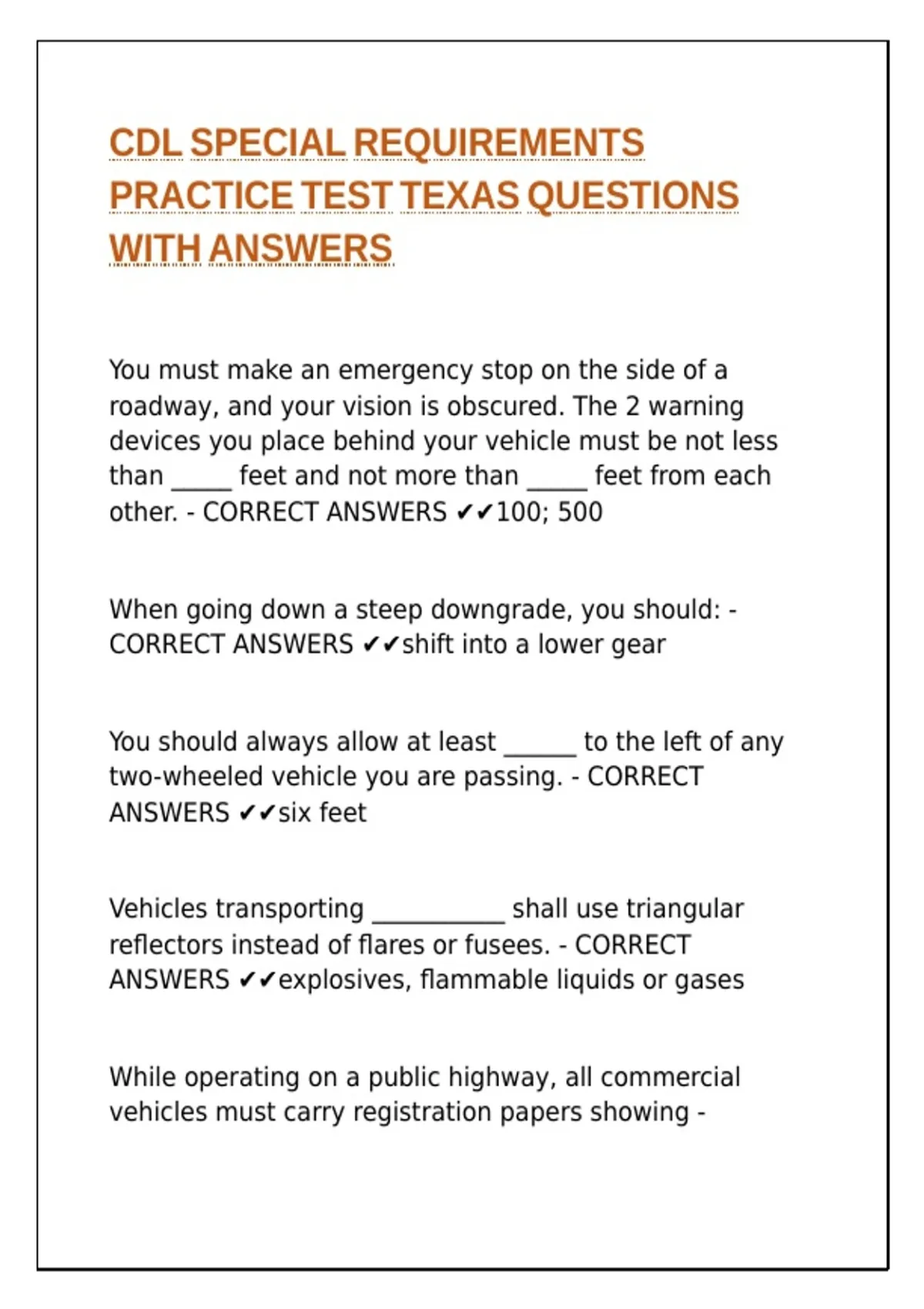 CORRECT ANSWERS ✔✔shift into a lower gear |\ |\ |\ |\ |\ |\