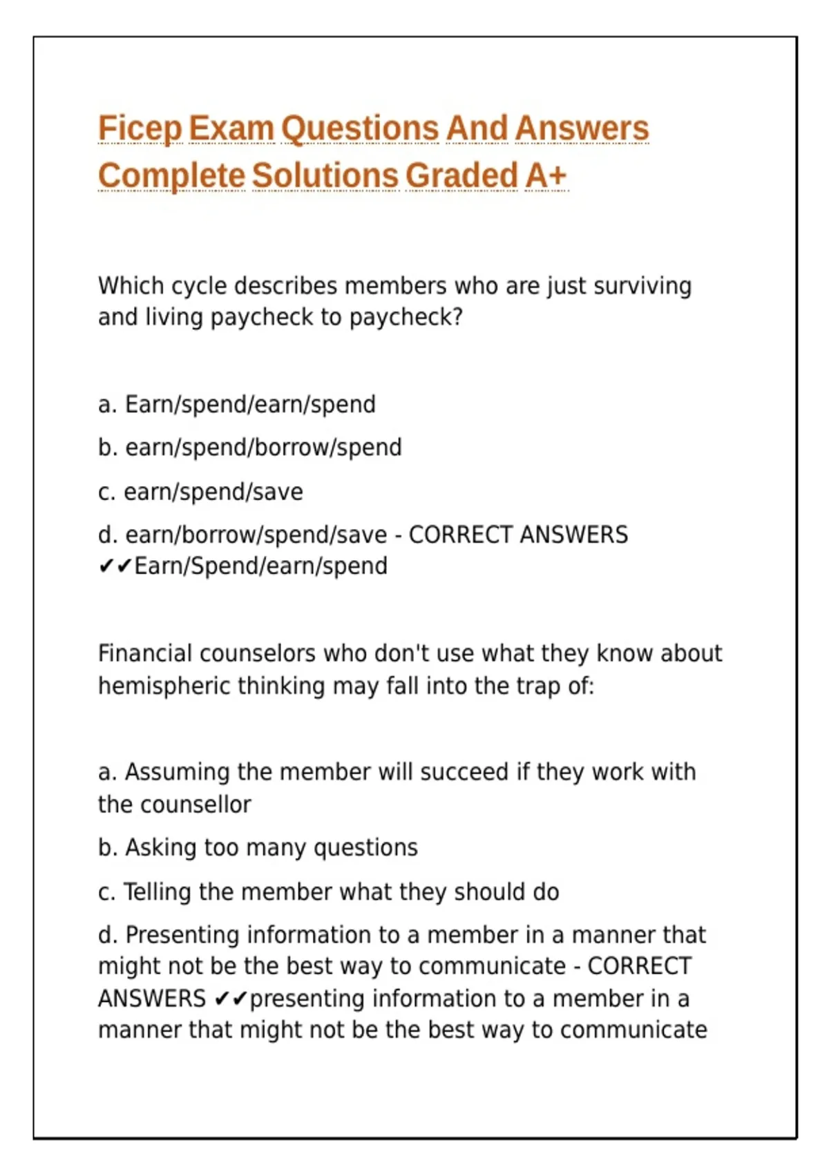Ficep Exam Questions And Answers Complete Solutions Graded A+.