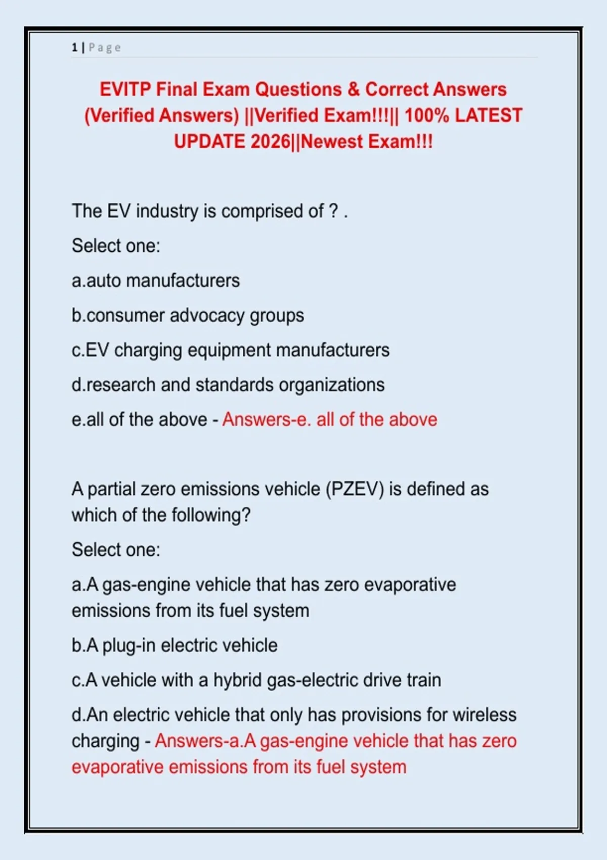 EVITP Final Exam Questions & Correct Answers