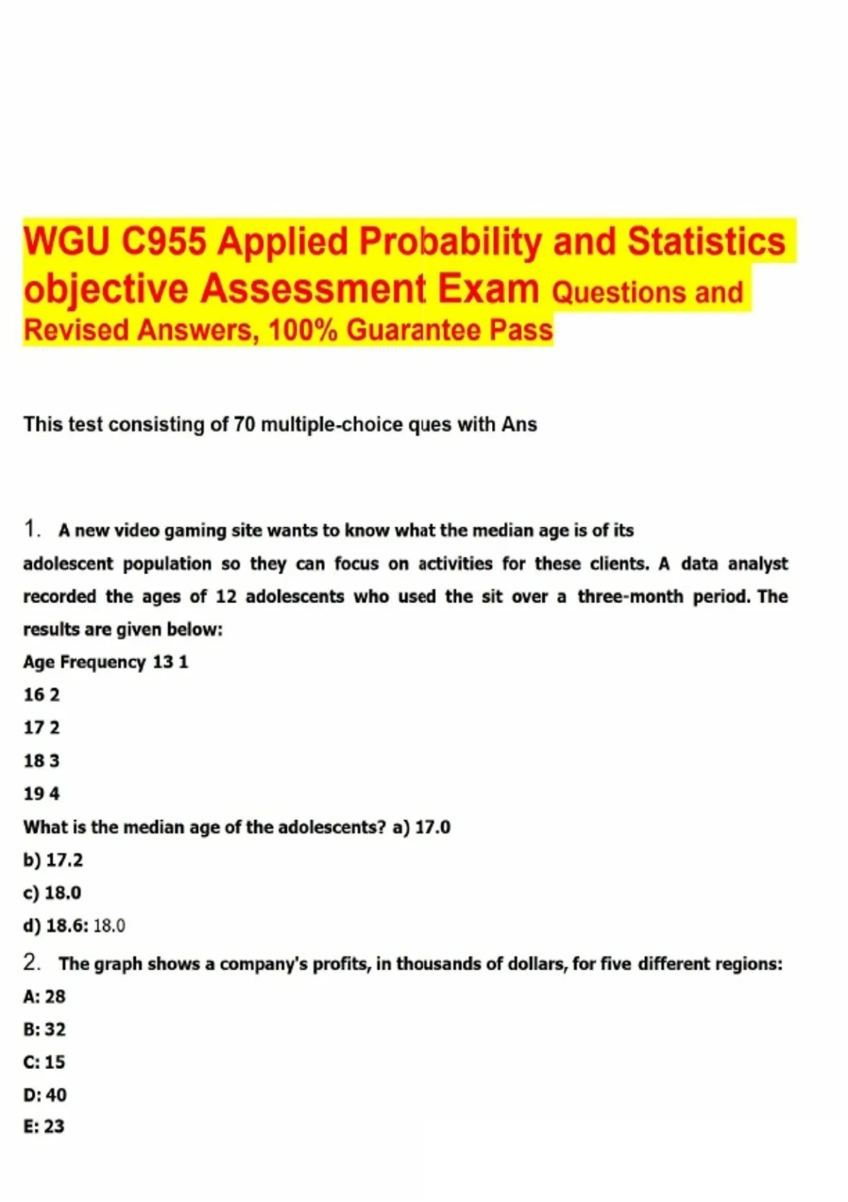 WGU C955 Applied Probability and Statistics objective Assessment Exam Questions and Revised Answers, 100% Guarantee Pass