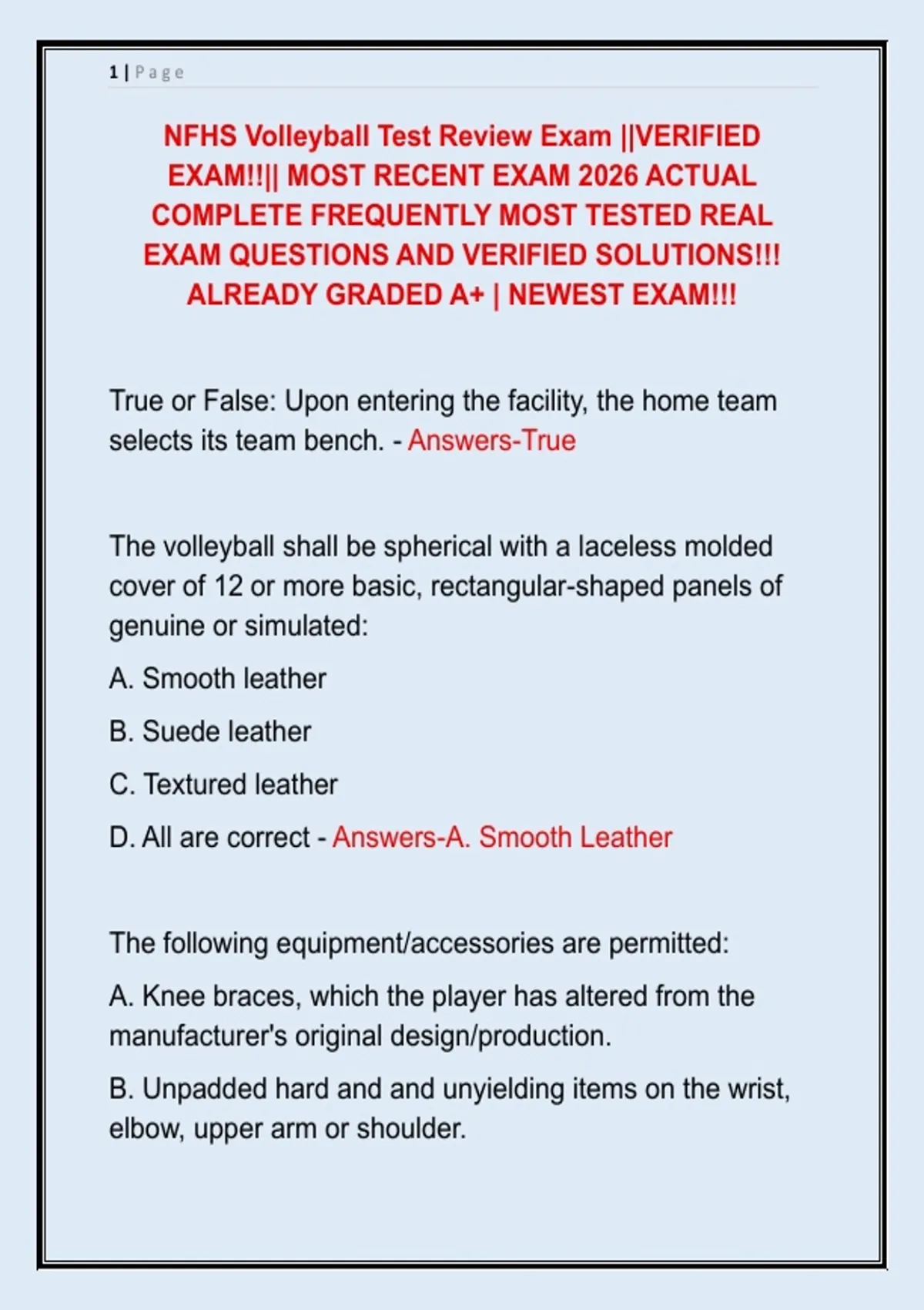 NFHS Volleyball Test Review Exam ||VERIFIED