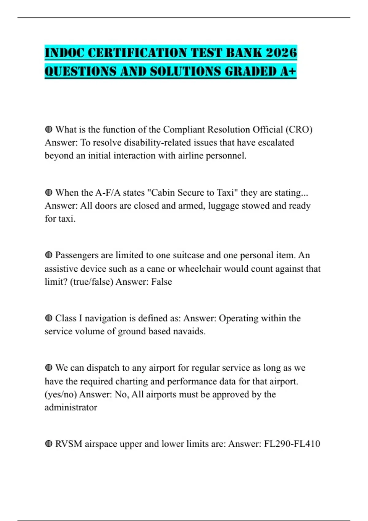INDOC CERTIFICATION TEST BANK 2026 QUESTIONS AND SOLUTIONS GRADED A+