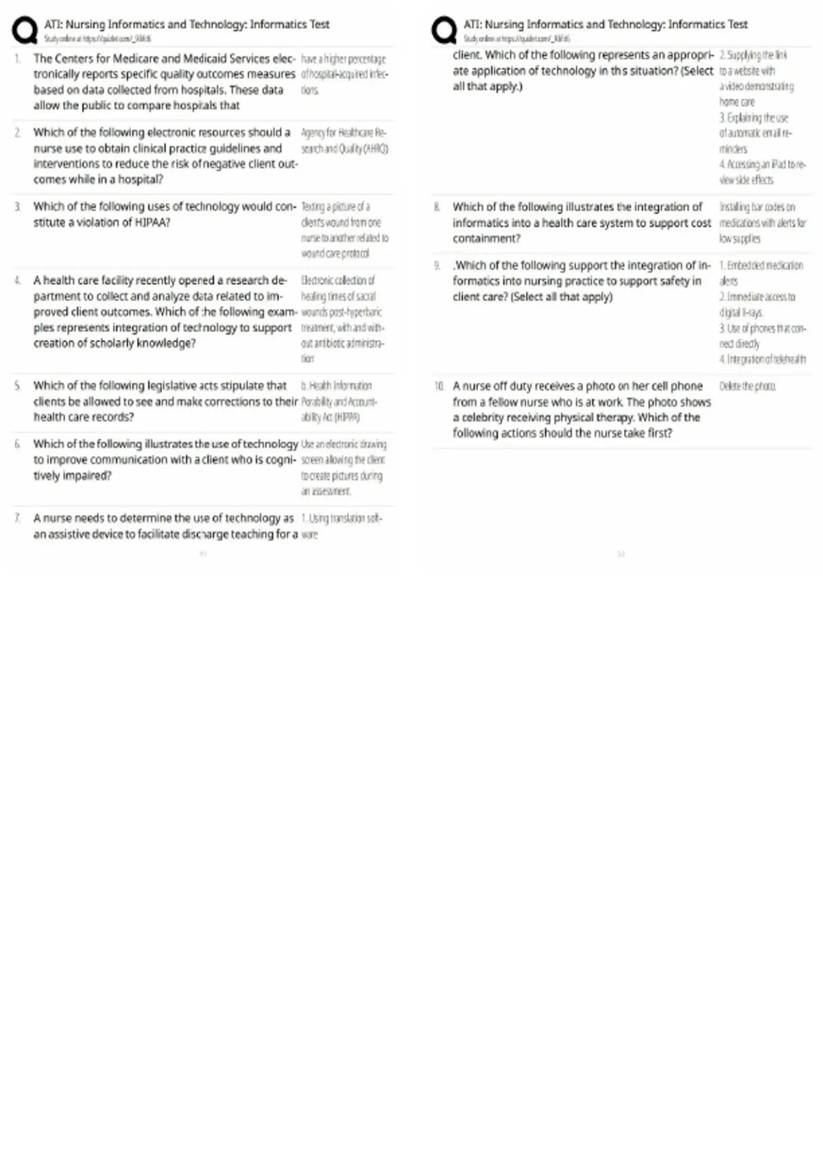 This ATI Nursing Informatics and Technology Informatics Test resource provides exam-focused preparation covering EHRs, clinical decision support, data standards, patient safety, privacy, and healthcare technology concepts. Designed for ATI quizzes, module tests, and exams to help nursing students score 100% with confidence.