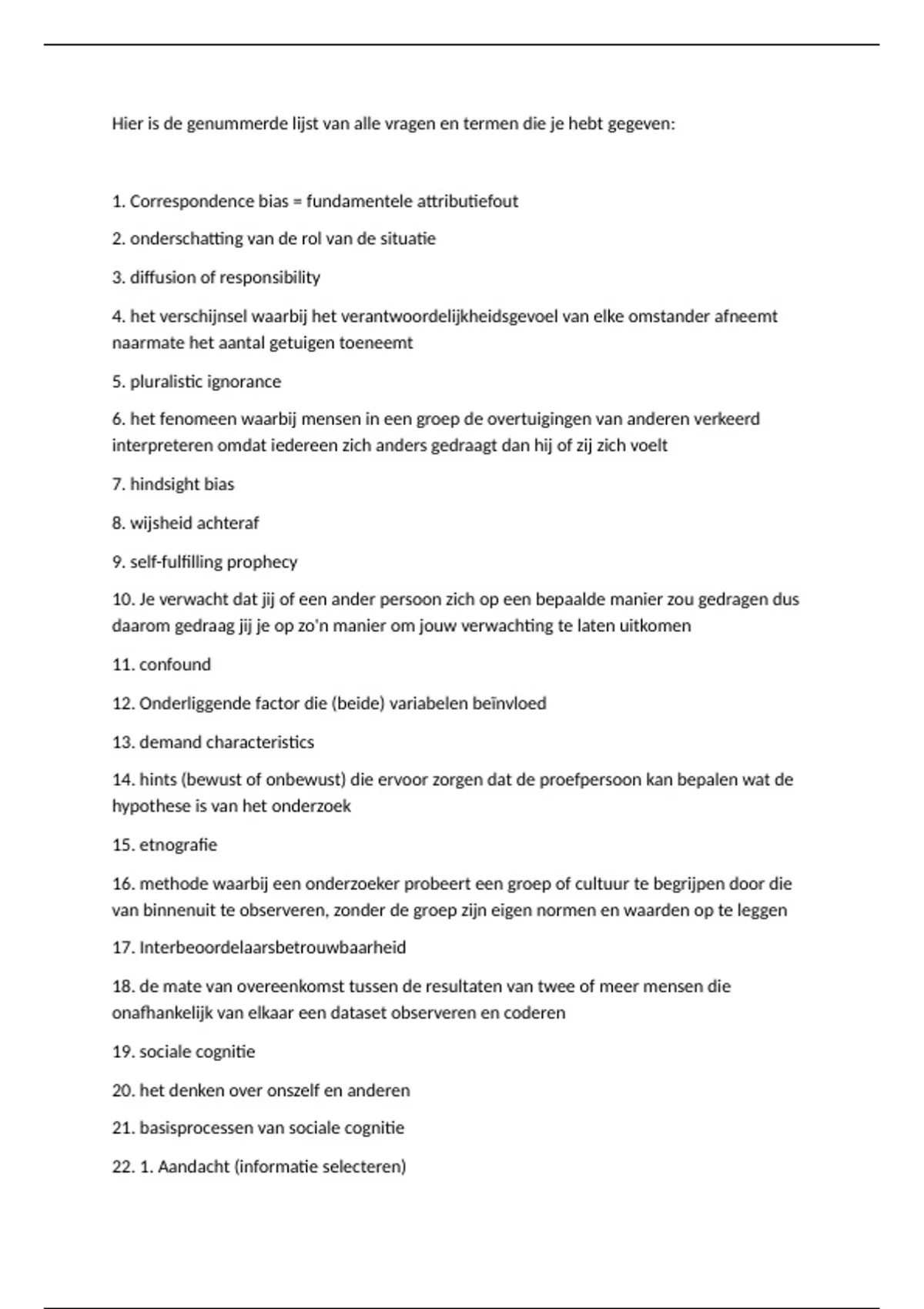 Hier is de genummerde lijst van alle vragen en termen die je hebt gegeven: