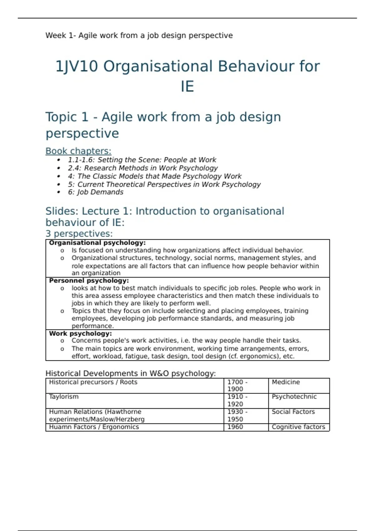 1JV10 Week 1 Summary of Lecture and Book: 2nd edition. Fully covered.
