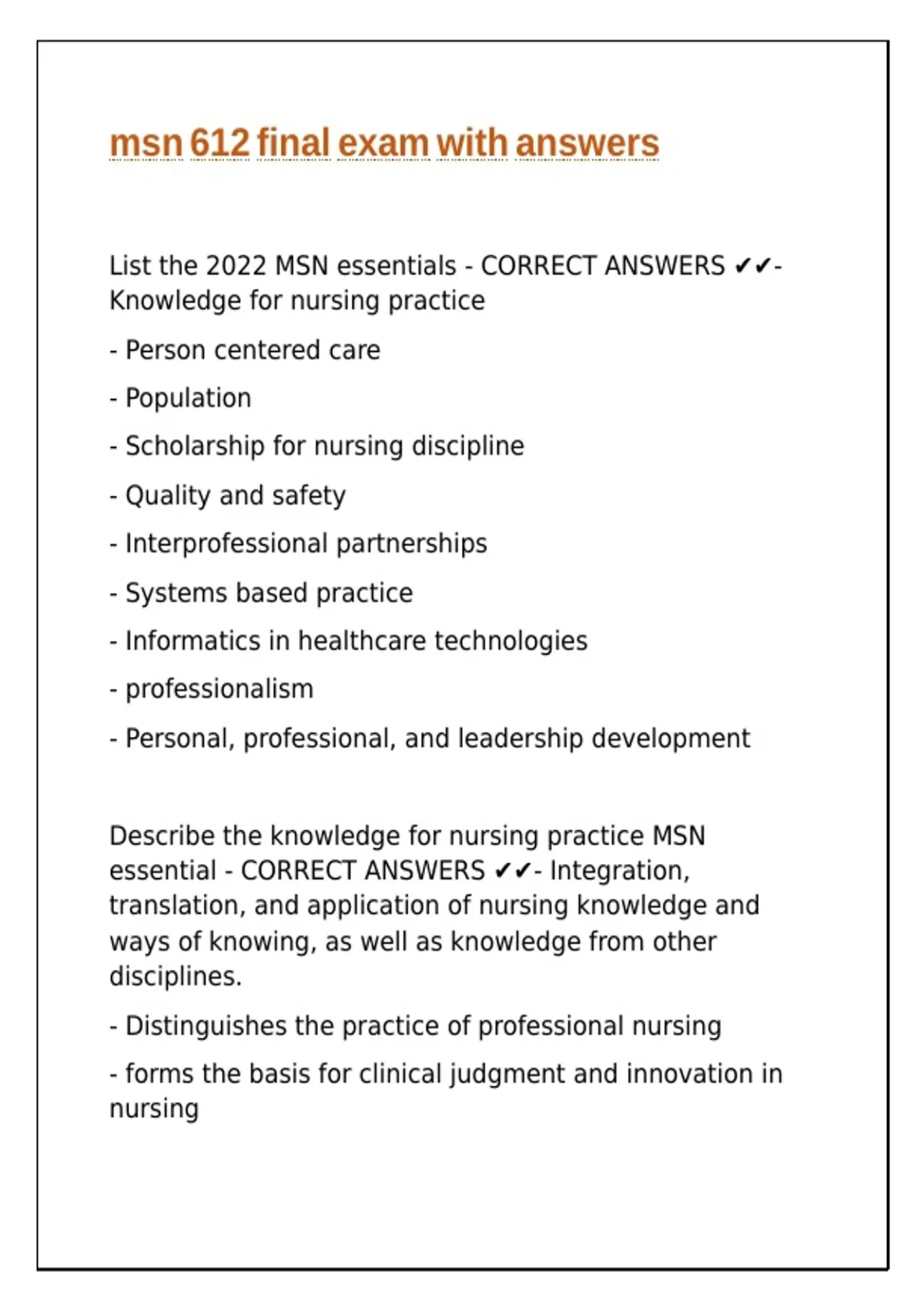 List the 2022 MSN essentials - CORRECT ANSWERS ✔✔-