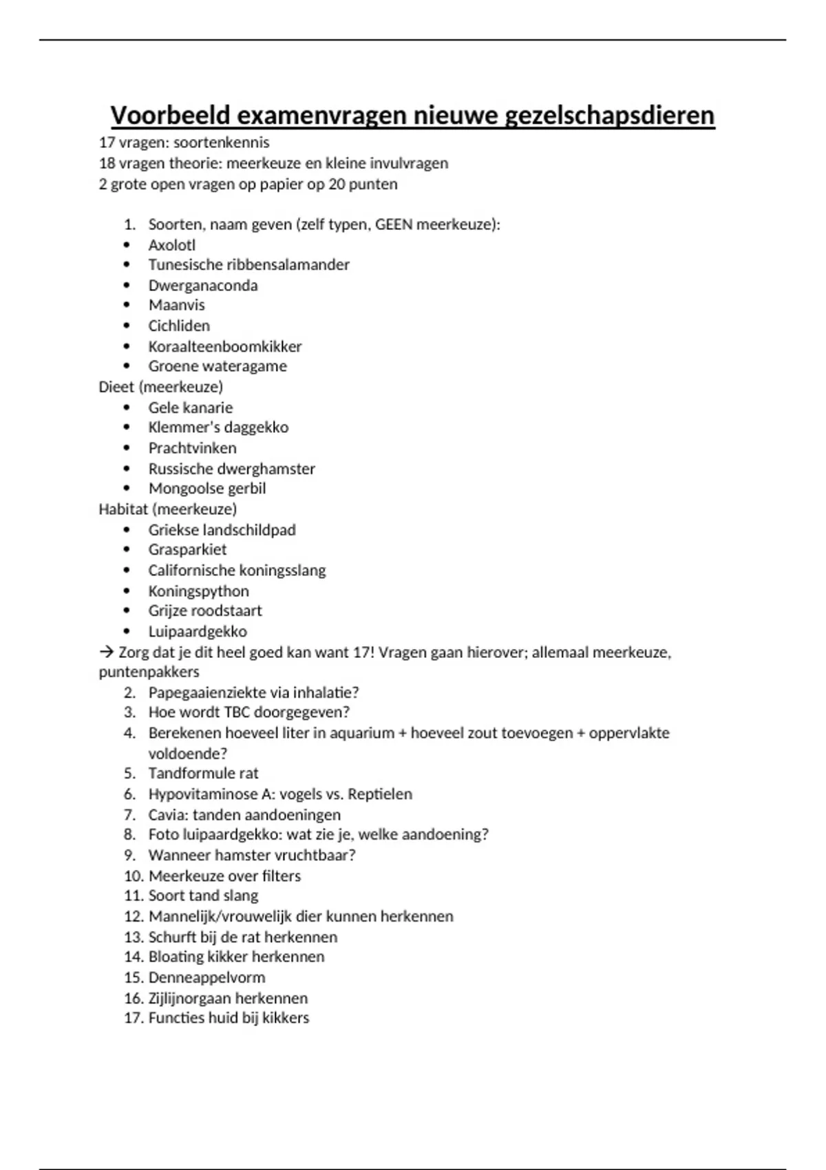 Voorbeeld examenvragen nieuwe gezelschapsdieren