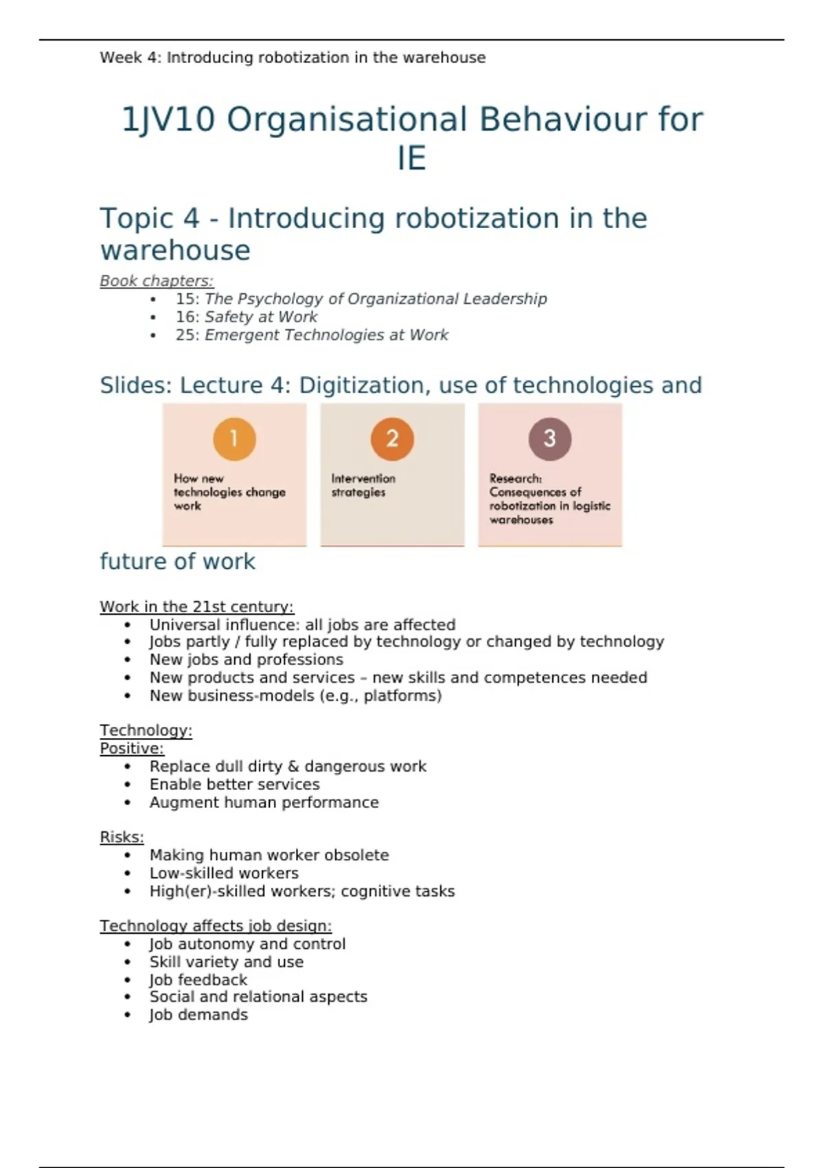 1JV10 Week 4 Summary and Lecture and Book: 2nd edition (Fully Covered)