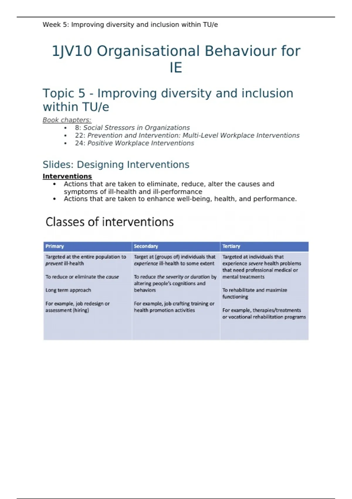 1JV10 Week 5 Summary of Lecture and Book: 2nd edition (Fully Covered)