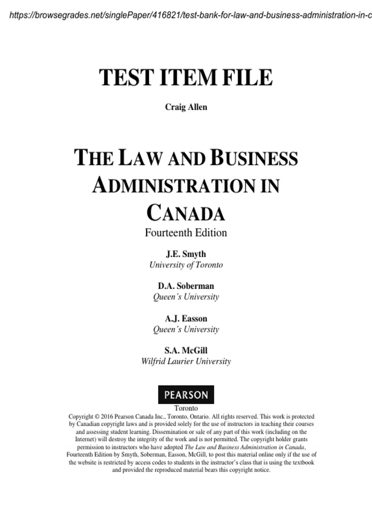 Fourteenth Edition by Smyth, Soberman, Easson, McGill, to post this material online only if the use of