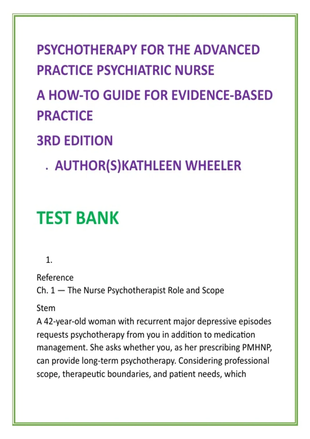 Ch. 1 — The Nurse Psychotherapist Role and Scope