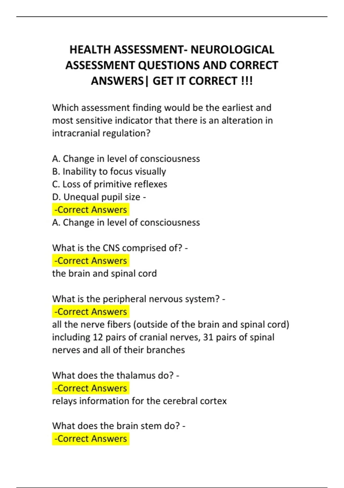 HEALTH ASSESSMENT- NEUROLOGICAL