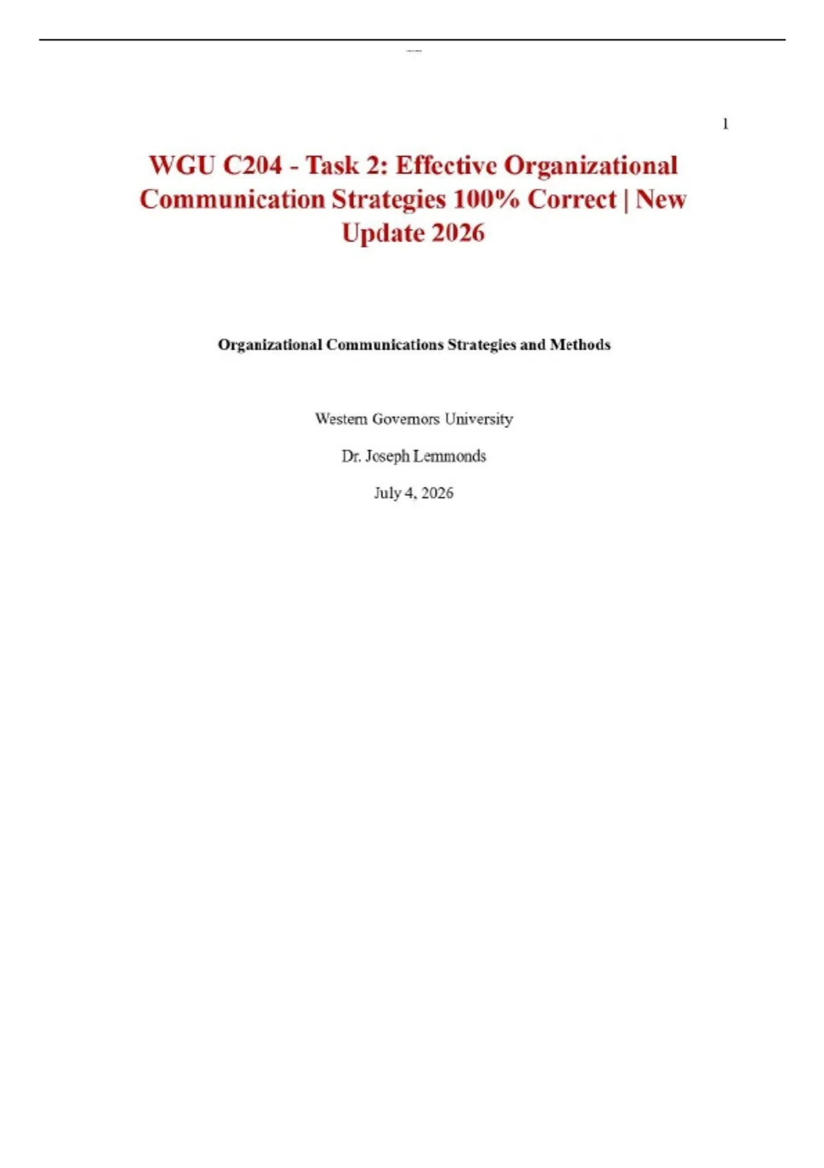 WGU C204 - Task 2: Effective Organizational Communication Strategies 100% Correct | New Update 2026