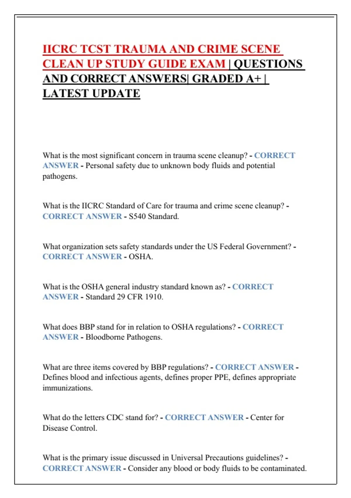 CORRECT ANSWER - OSHA.