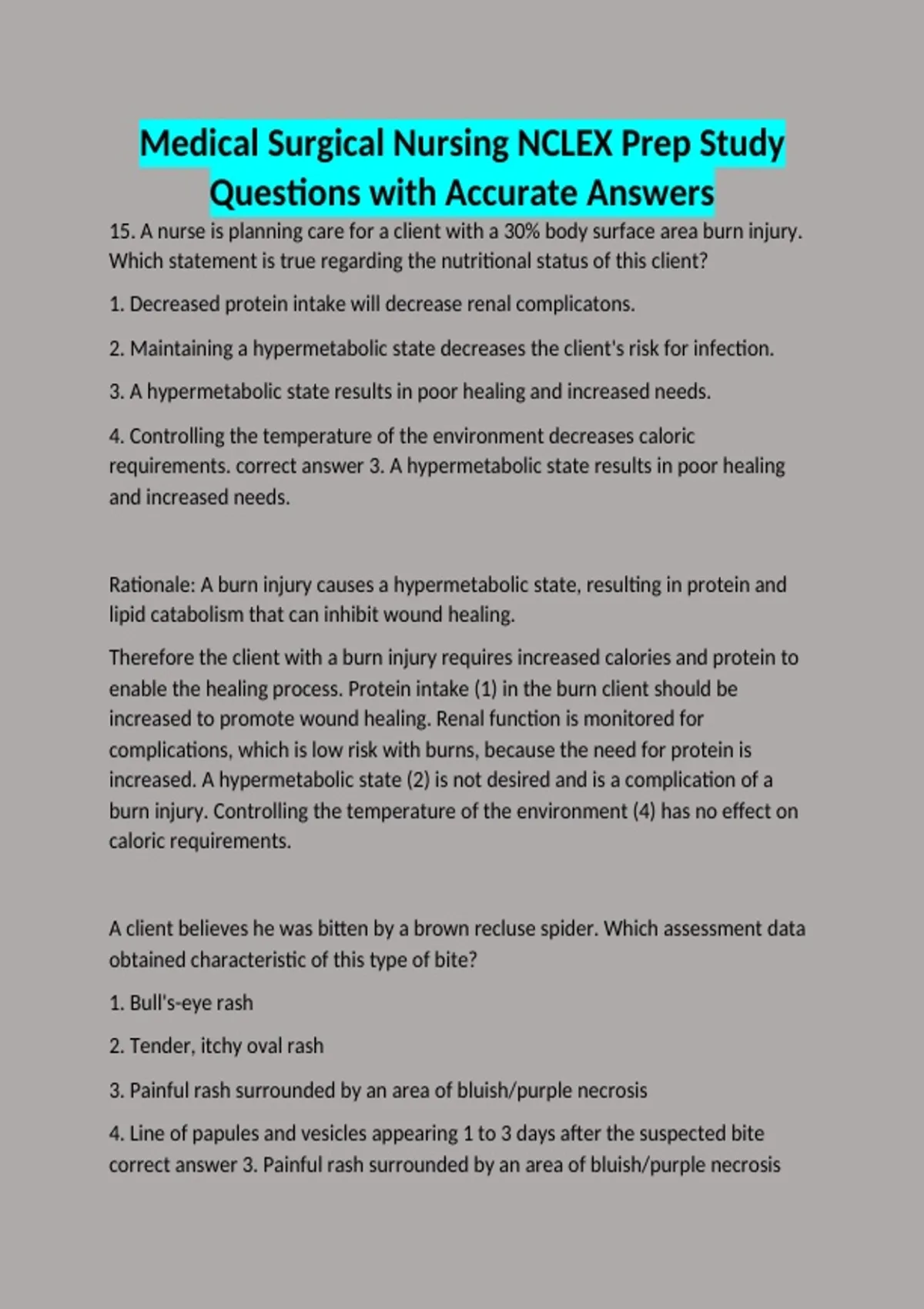 15. A nurse is planning care for a client with a 30% body surface area burn injury.
