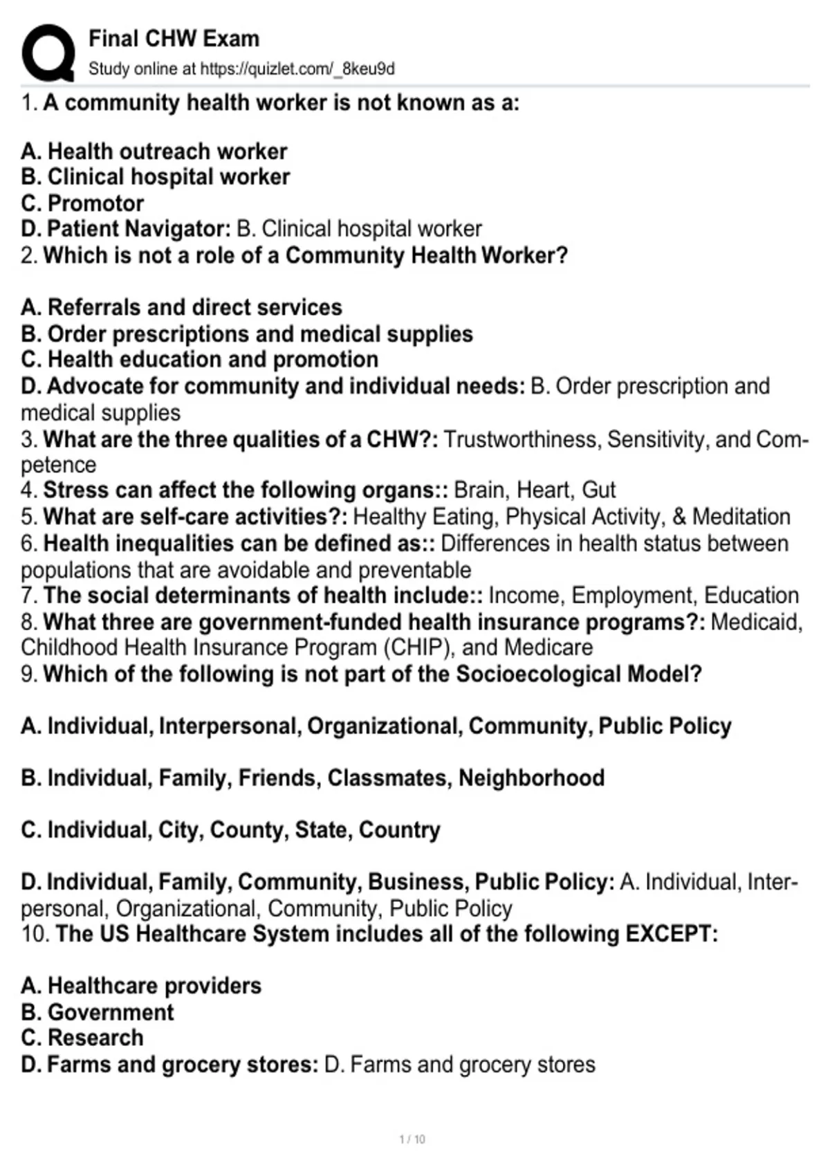 , Final CHW Exam