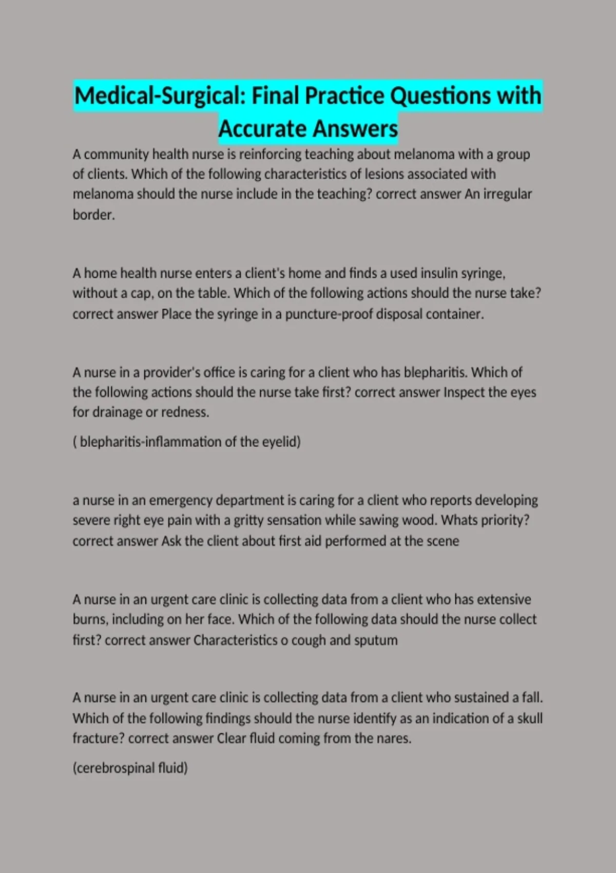 Medical-Surgical: Final Practice Questions with Accurate Answers