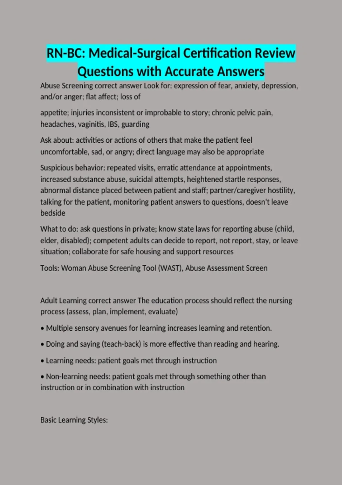 Adult Learning correct answer The education process should reflect the nursing
