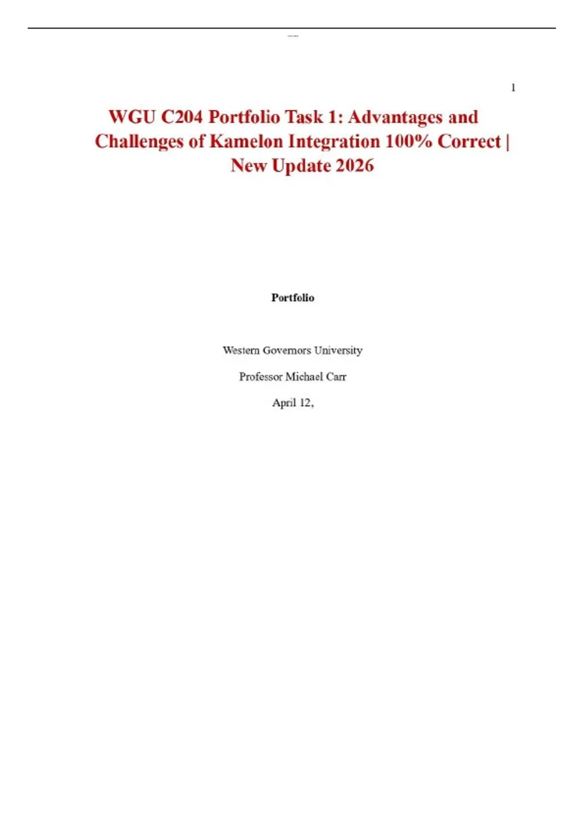 WGU C204 Portfolio Task 1: Advantages and Challenges of Kamelon Integration 100% Correct | New Update 2026