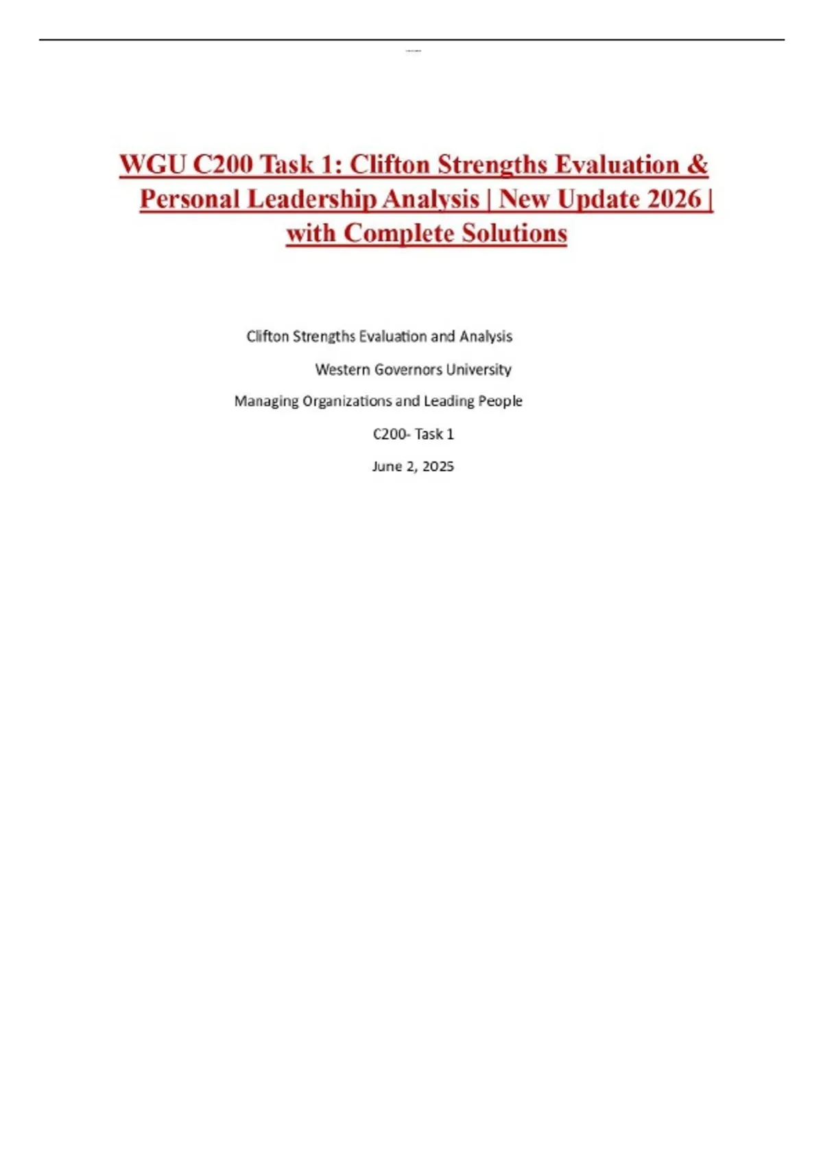 WGU C200 Task 1: Clifton Strengths Evaluation & Personal Leadership Analysis | New Update 2026 | with Complete Solutions