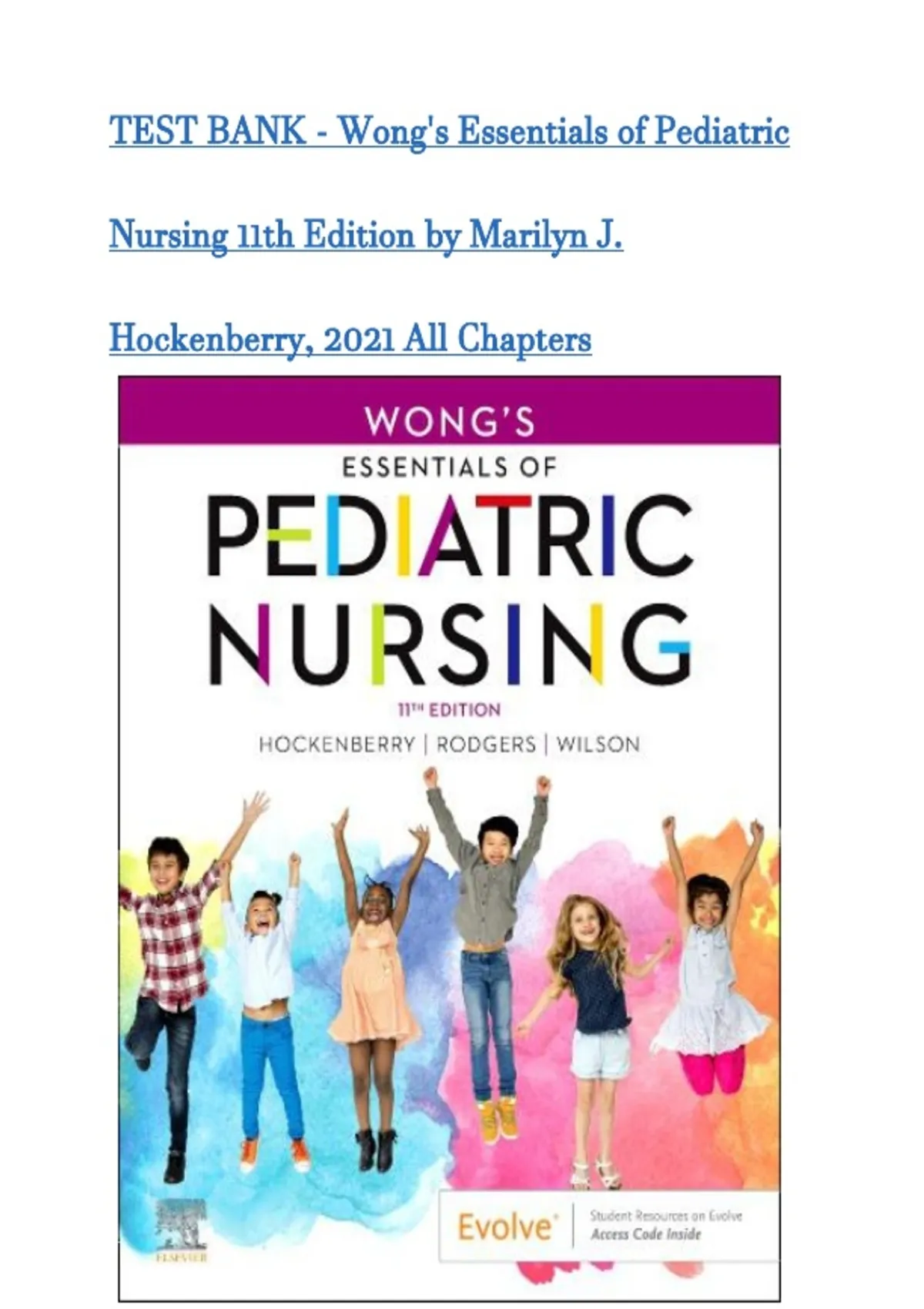 Test Bank - Wong’s Essentials of Pediatric Nursing, 11th Edition (Hockenberry, 2022)