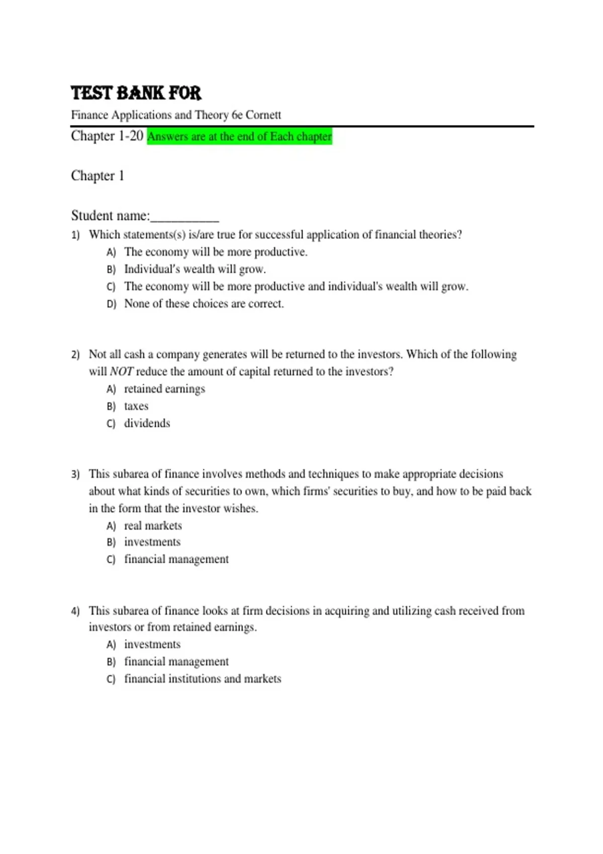 Chapter 1-20 Answers are at the end of Each chapter