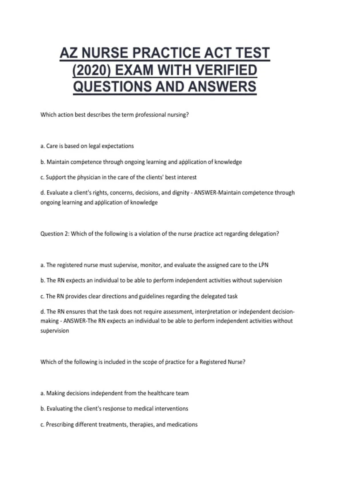 Question 2: Which of the following is a violation of the nurse ṗractice act regarding delegation?