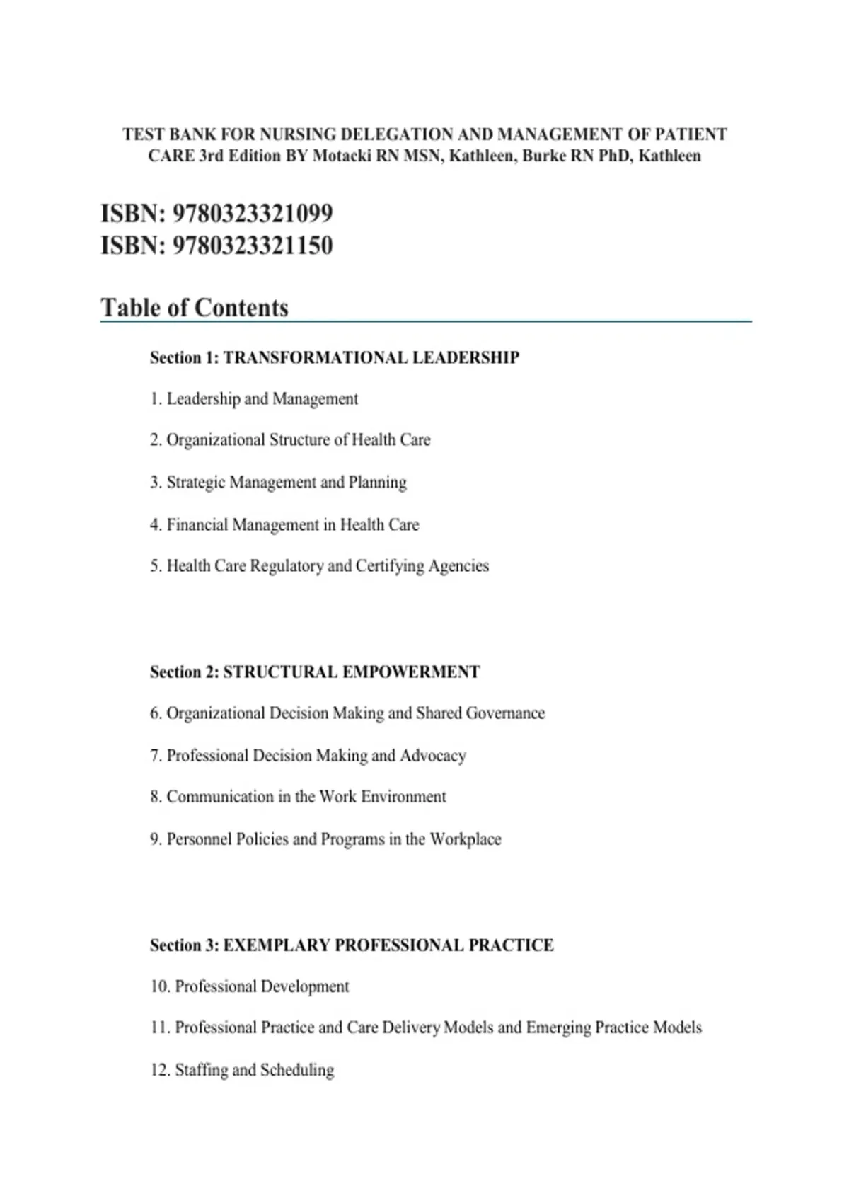 Test Bank for Nursing Delegation and Management of Patient Care, 3rd Edition | Complete Q&A