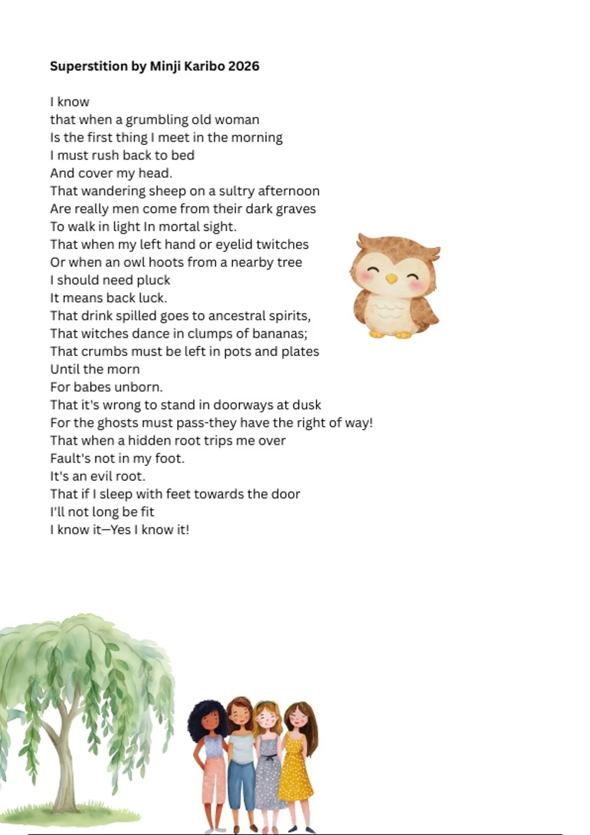 Line by line analysis of Superstition by Minji Karibo