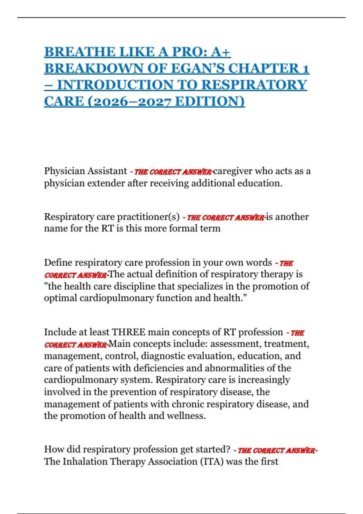 BREATHE LIKE A PRO: A+ BREAKDOWN OF EGAN’S CHAPTER 1 – INTRODUCTION TO RESPIRATORY CARE (2026–2027 EDITION)