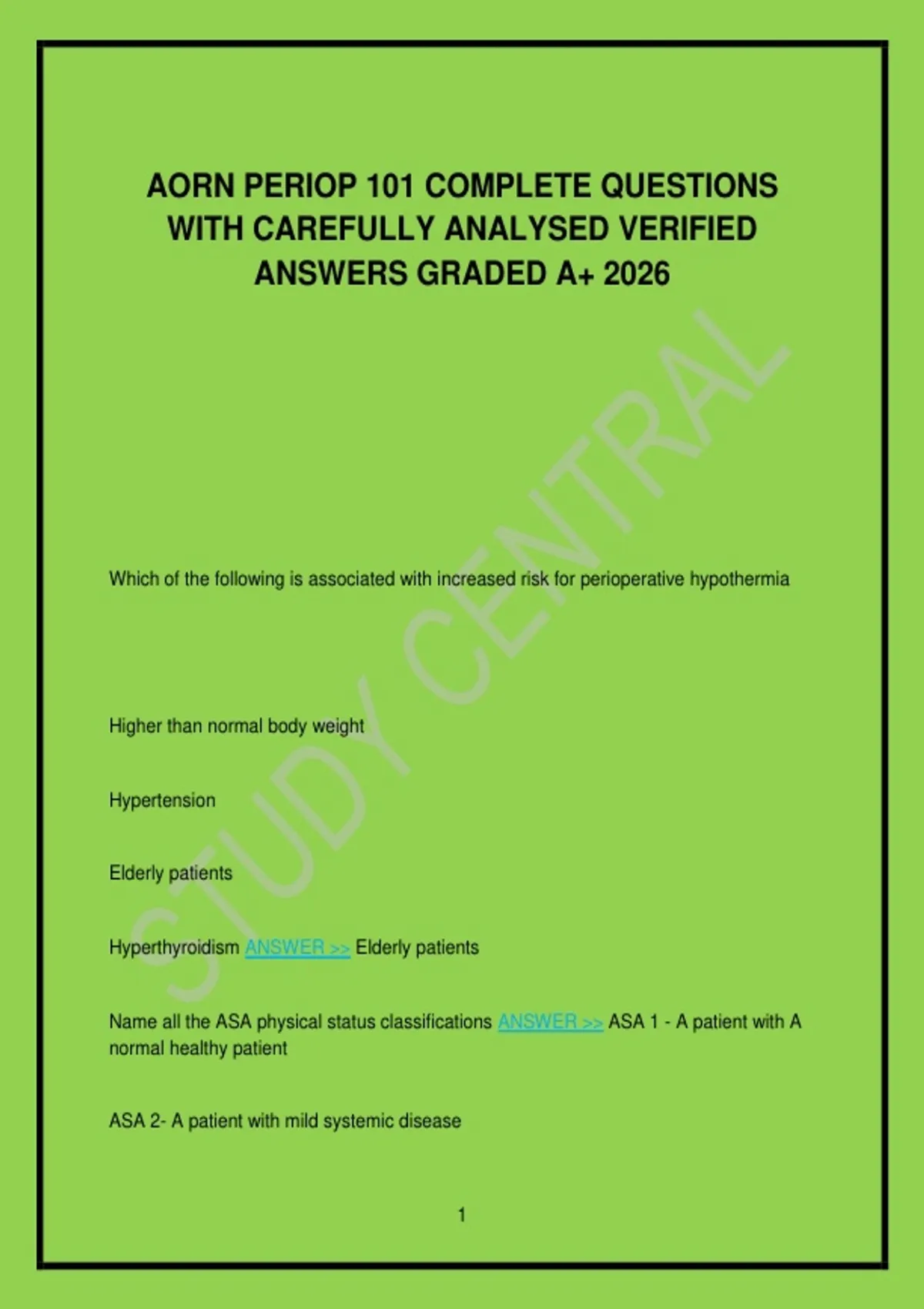 ASA 1 ANSWER >> - A patient with A normal healthy patient