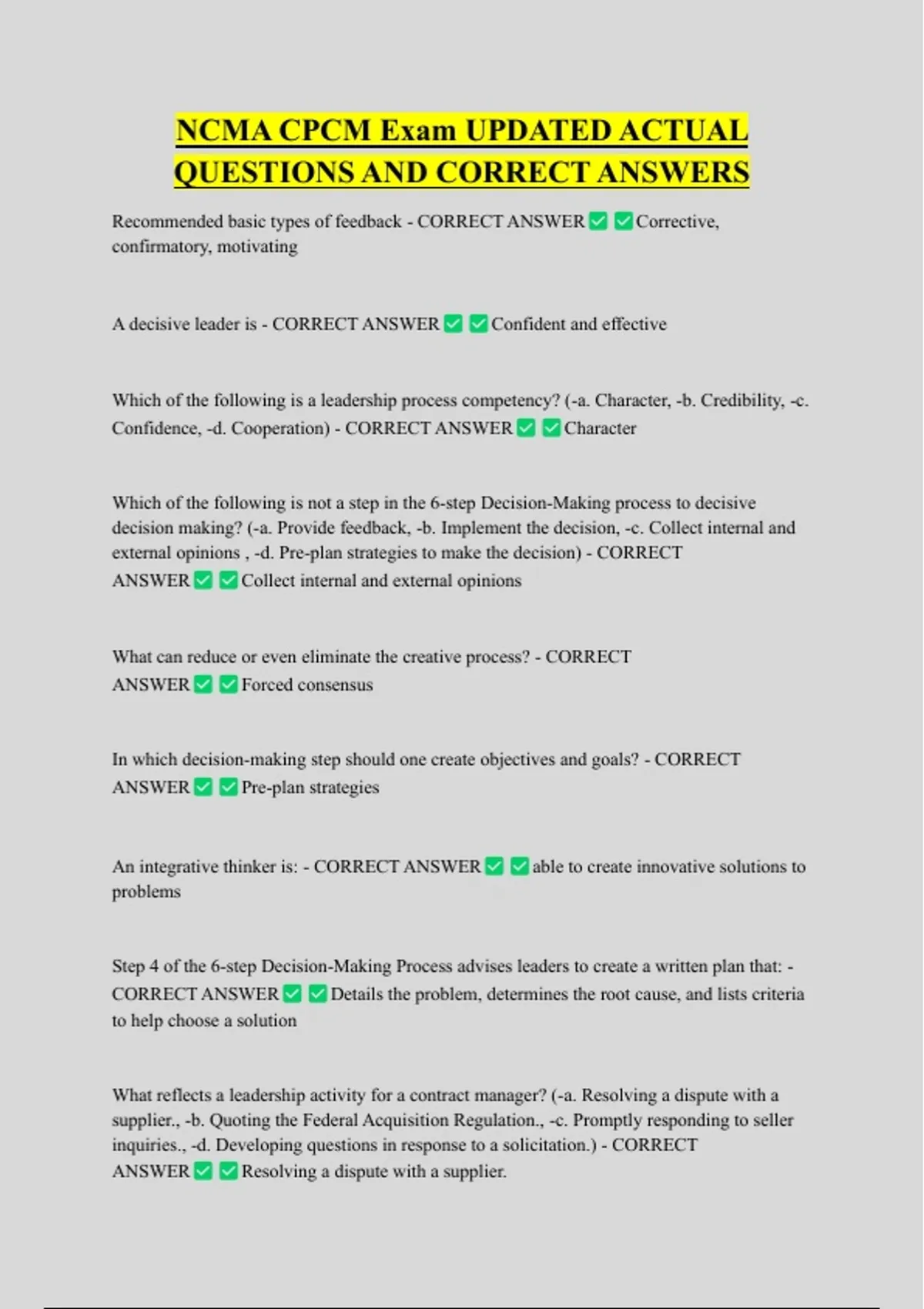 A decisive leader is - CORRECT ANSWER Confident and effective