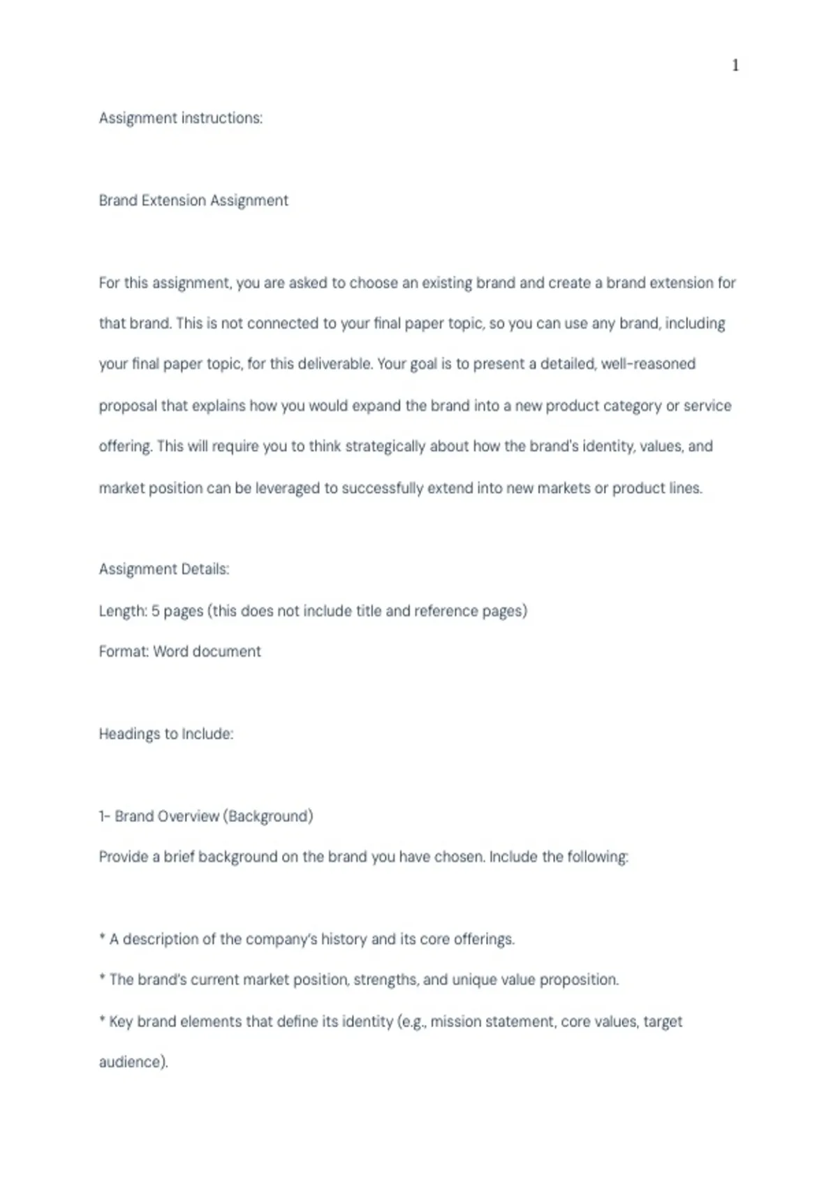 For this assignment, you are asked to choose an existing brand and create a brand extension for