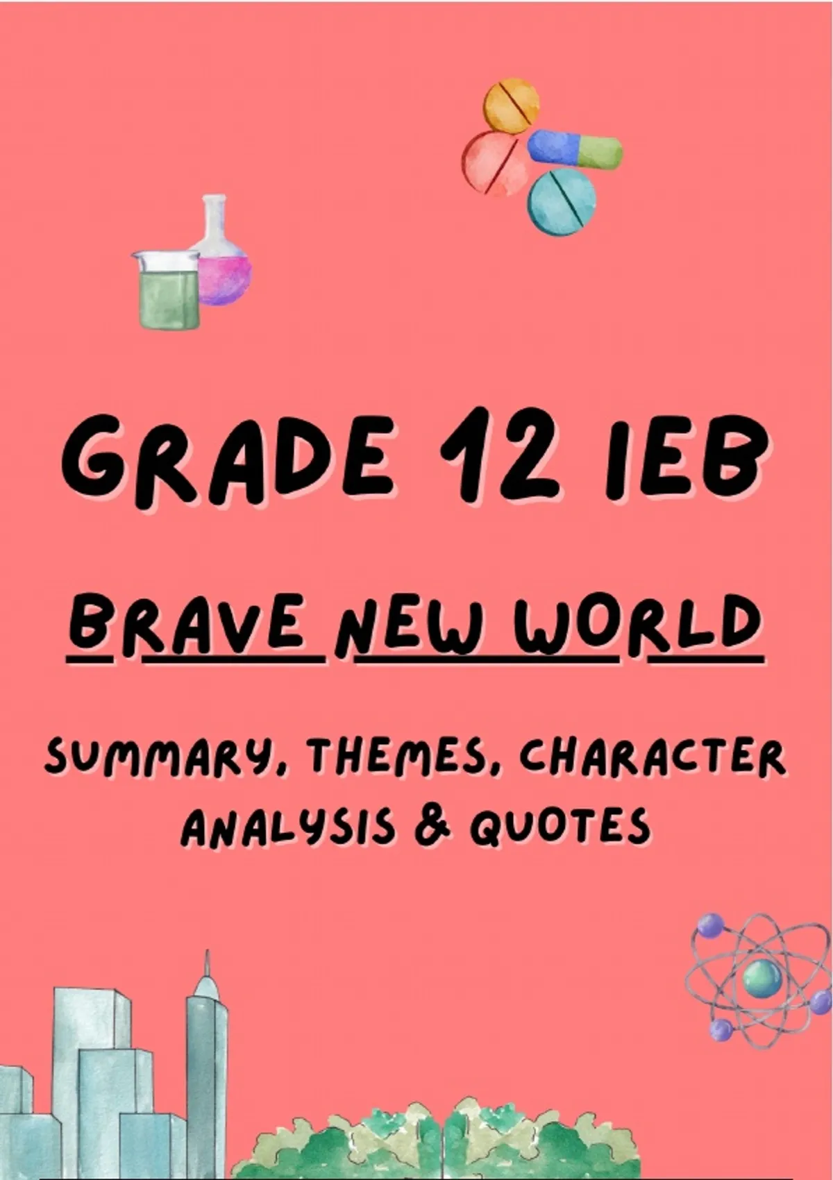 This comprehensive study document offers an in-depth, exam-focused guide to Brave New World, featuring a detailed analysis of all events from Chapters 1–18, a thorough exploration of 10 major themes, and extensive character analyses covering nearly every significant figure in the novel. It also includes 6 carefully selected and fully explained quotations per chapter (108 total), ideal for essay integration and high-mark responses. In addition, the document provides clear, practical guidance on how to approach English Home Language Paper 2 essays, with structured planning advice, paragraph frameworks, examiner-focused tips, and worked examples of high-quality essays to model effective academic writing—making it an exceptionally valuable resource students.