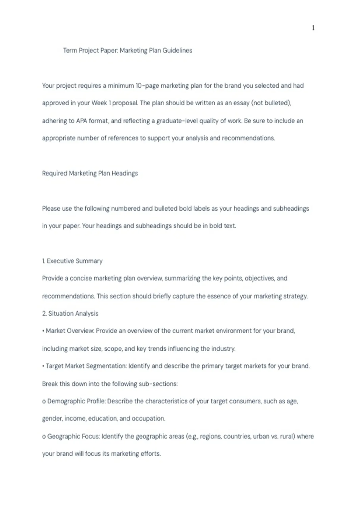 Term Project Paper: Marketing Plan Guidelines