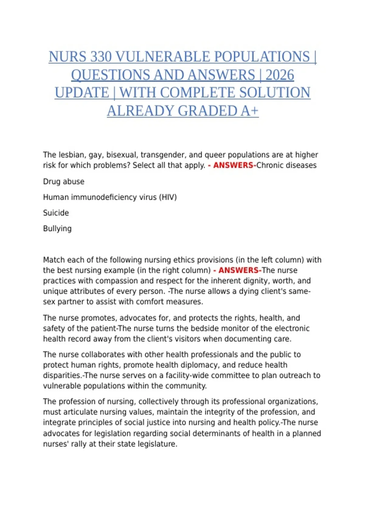 nurse take? Select all that apply. - ANSWERS-Start a lesbian, gay, bisexual,