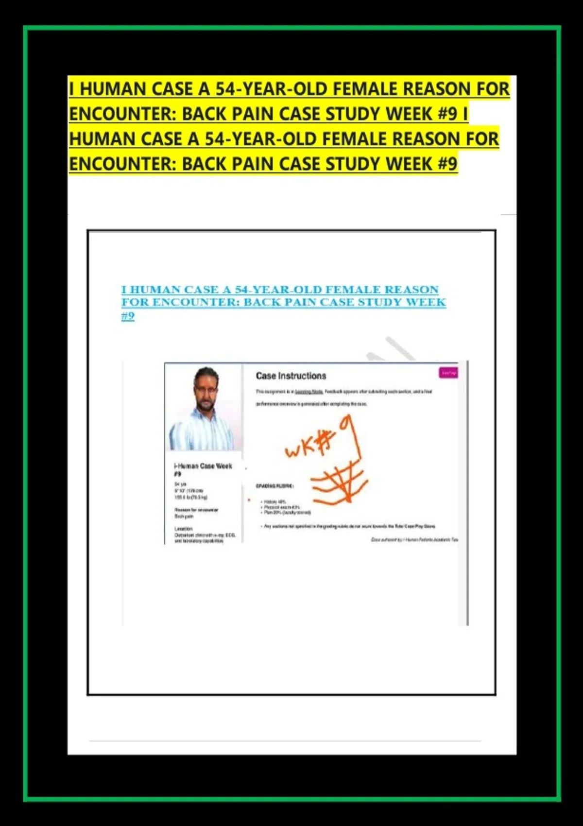 I HUMAN CASE A 54-YEAR-OLD FEMALE REASON FOR ENCOUNTER: BACK PAIN CASE STUDY WEEK #9 I HUMAN CASE A 54-YEAR-OLD FEMALE REASON FOR ENCOUNTER: BACK PAIN CASE STUDY WEEK #9