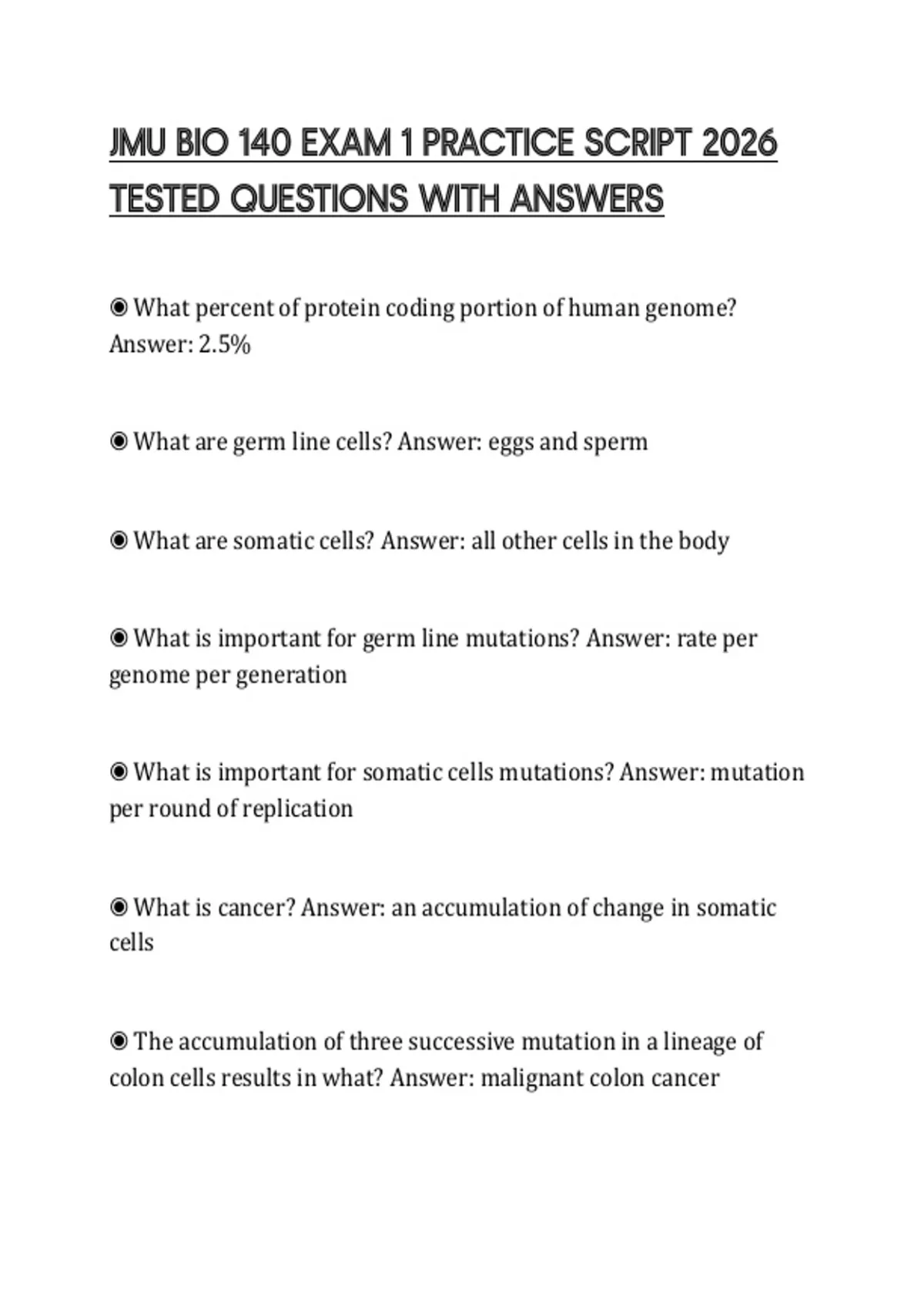 JMU BIO 140 EXAM 1 PRACTICE SCRIPT 2026 TESTED QUESTIONS WITH ANSWERS