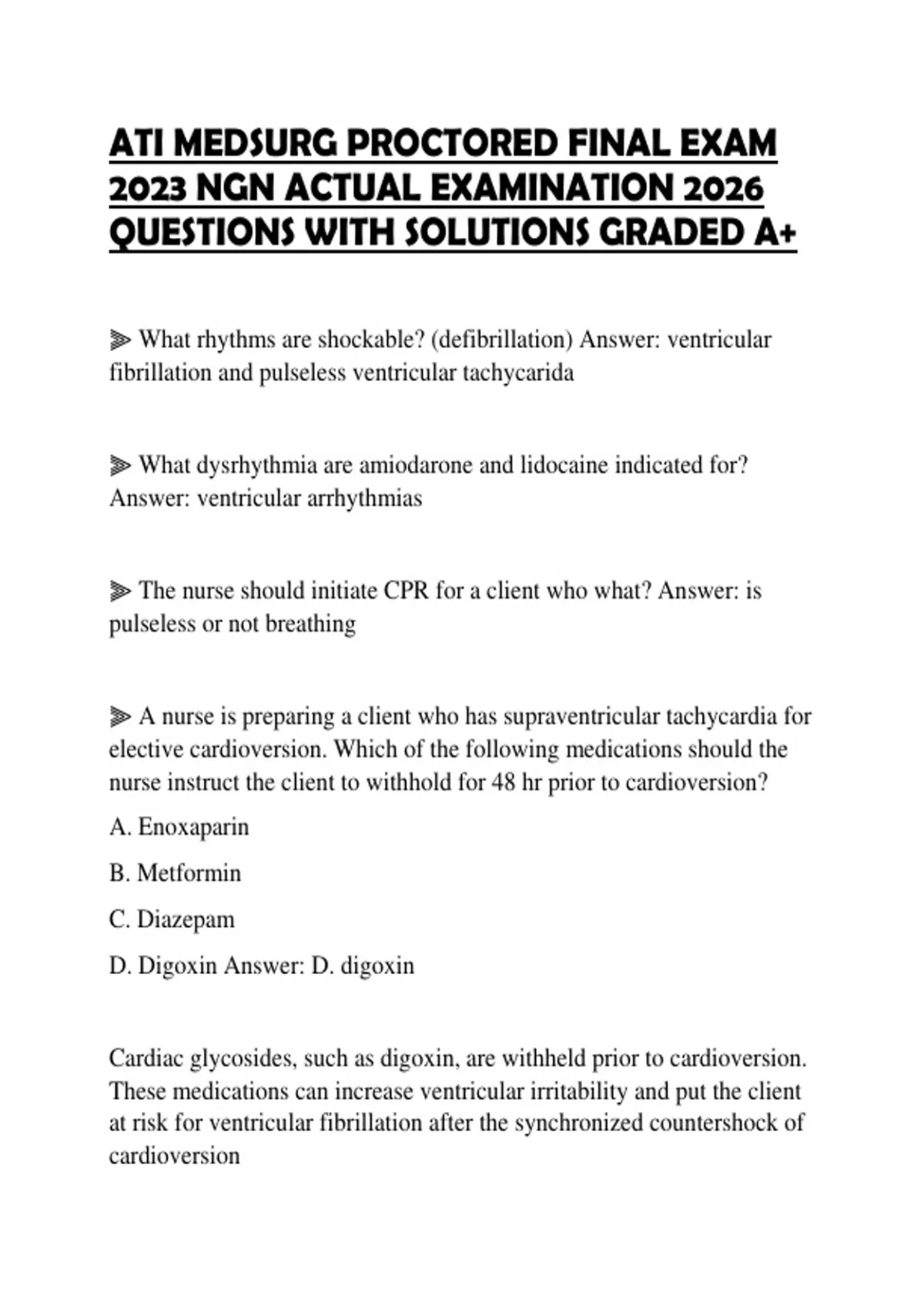 ⫸ What kind of drugs are withheld prior to cardioversion? Answer: