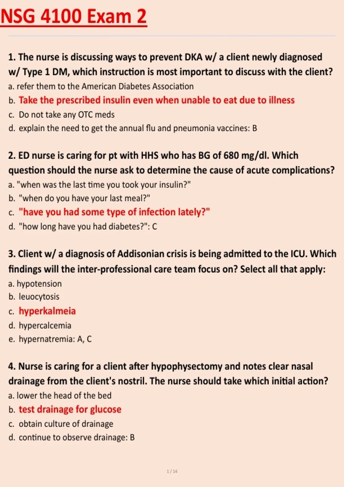 1. The nurse is discussing ways to prevent DKA w/ a client newly diagnosed