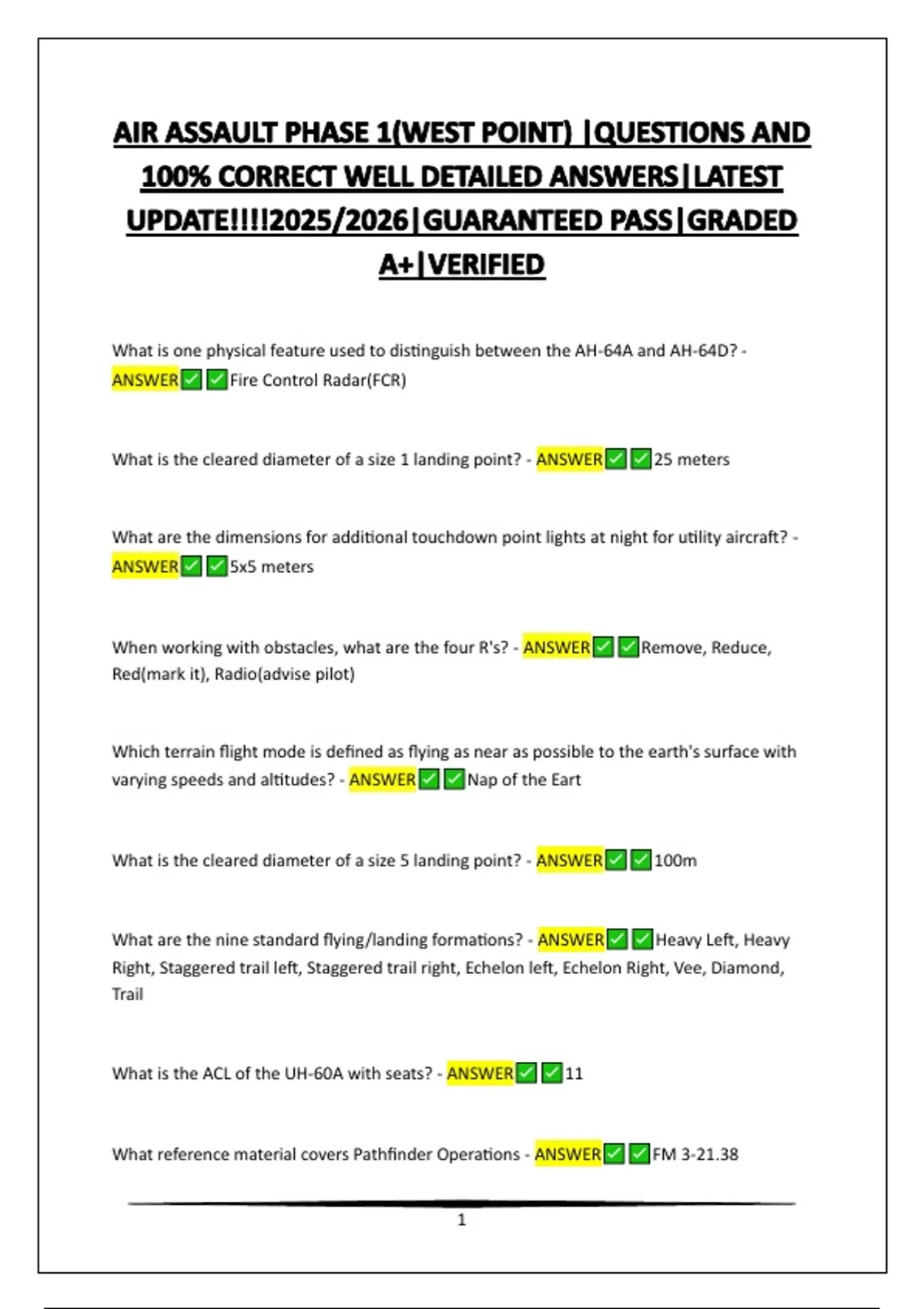 AIR ASSAULT PHASE 1(WEST POINT) |QUESTIONS AND 100% CORRECT WELL DETAILED ANSWERS|LATEST UPDATE!!!!2025/2026|GUARANTEED PASS|GRADED A+|VERIFIED