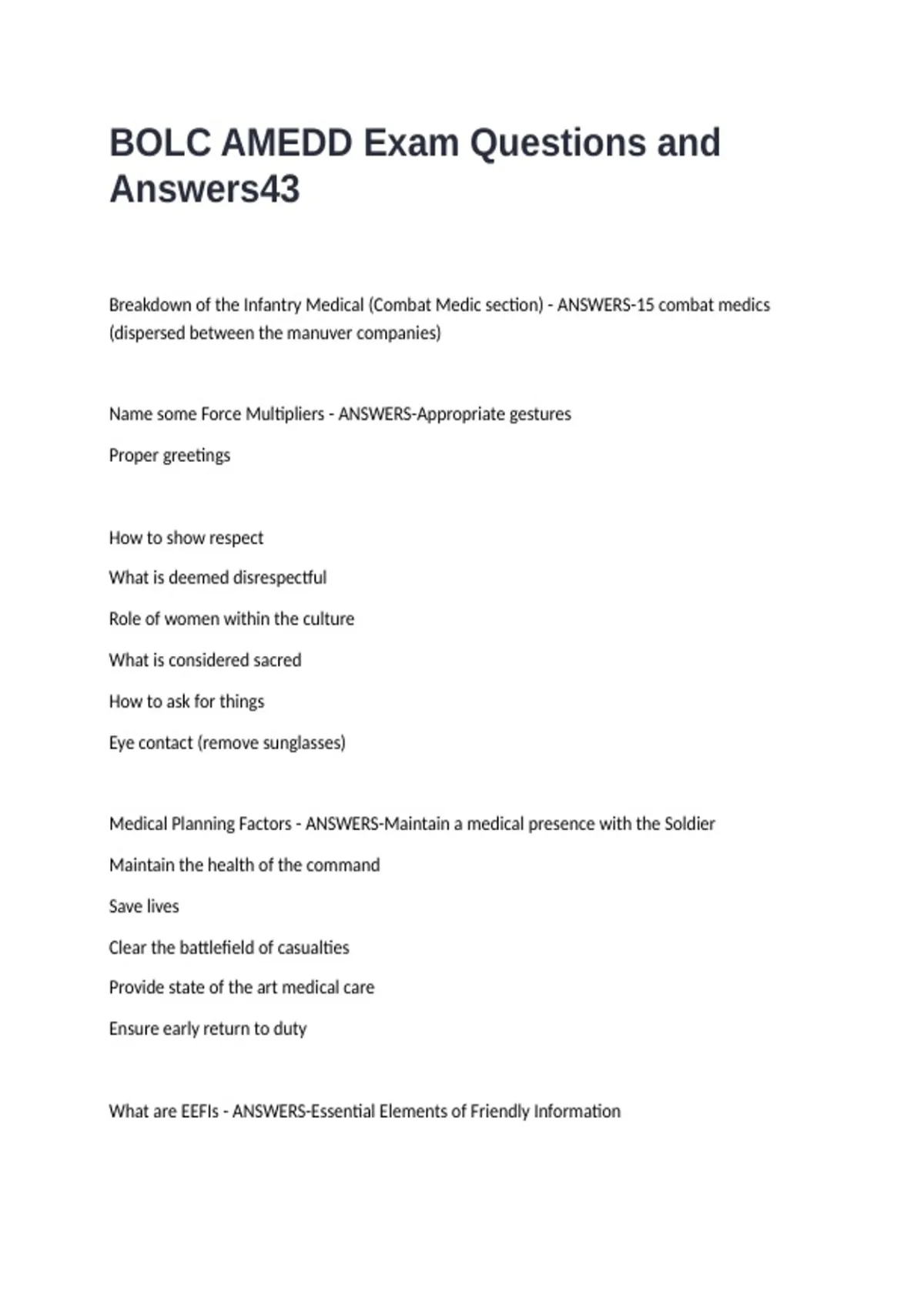 BOLC AMEDD Exam Questions and